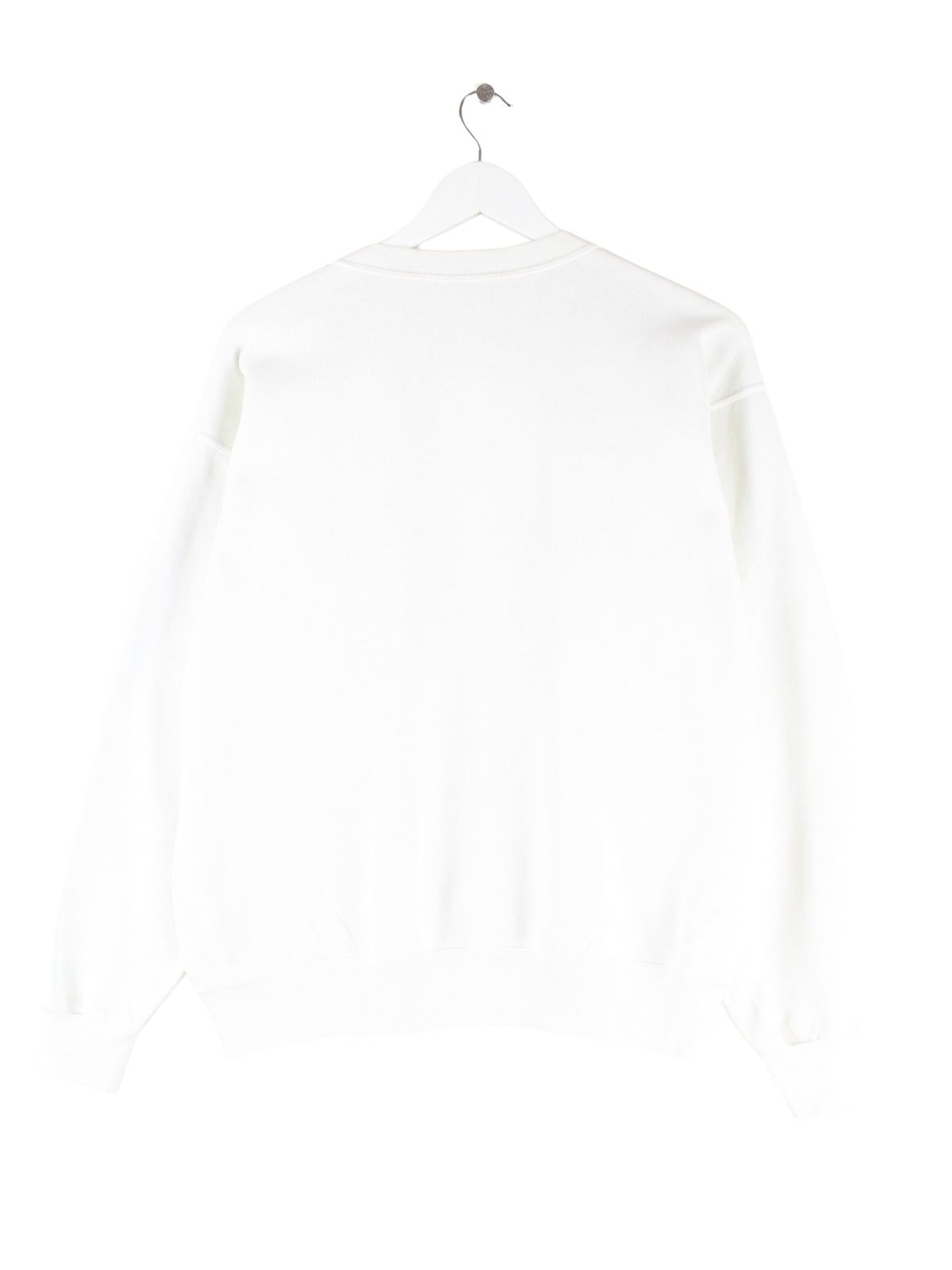 Weißer Sweater vom Label Hard Rock Cafe aus den 90'ern in Größe M. Er ist aus einer Baumwollmischung und in gutem Zustand zu bekommen. Mit schickem York Print.