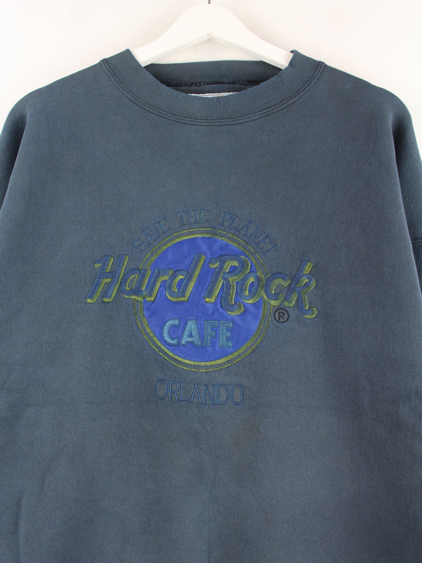 Hard Rock Cafe 90s Vintage Orlando Embroidered Sweater Blue XL