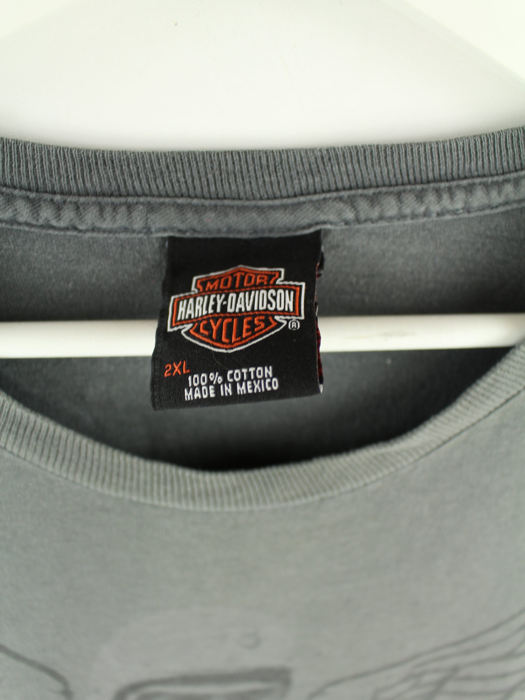 T-shirt from the Harley-Davidson brand in size XXL from the early 2000s. It is made of cotton and is available from us in grey. With a rare Vegas print.