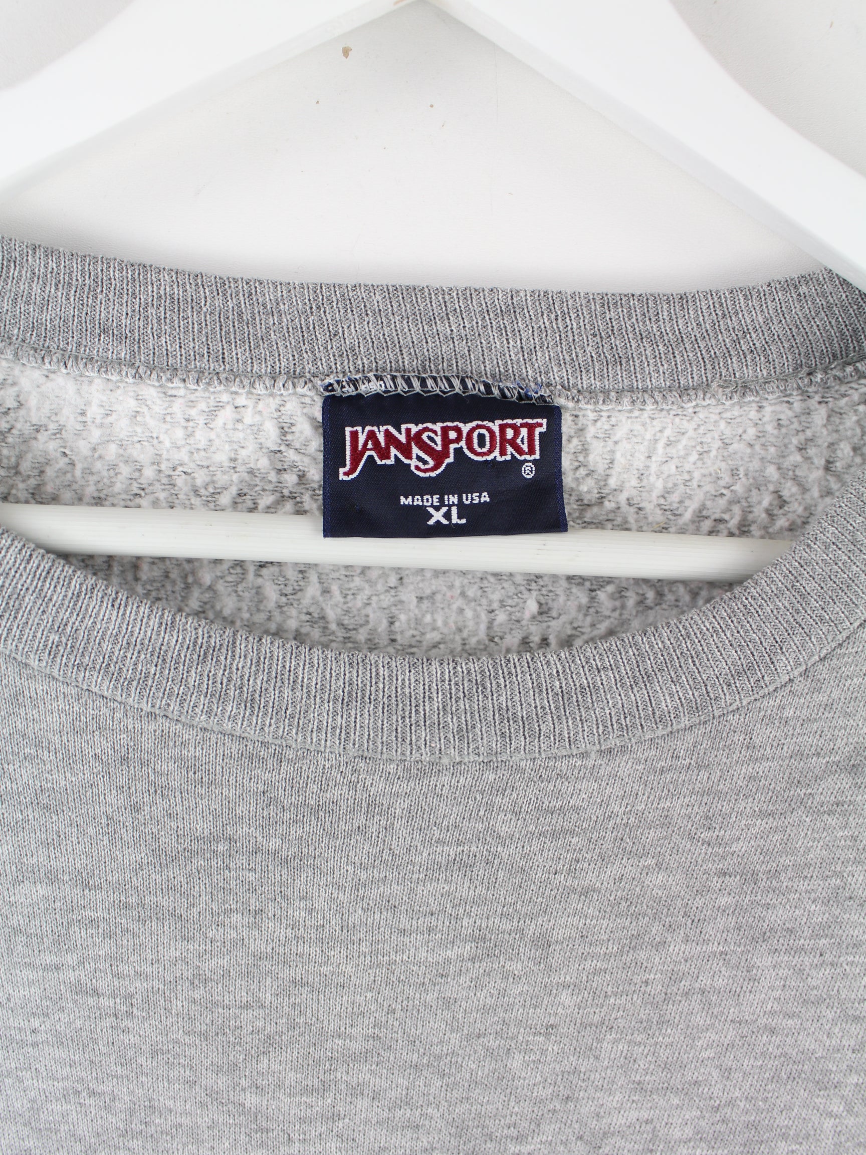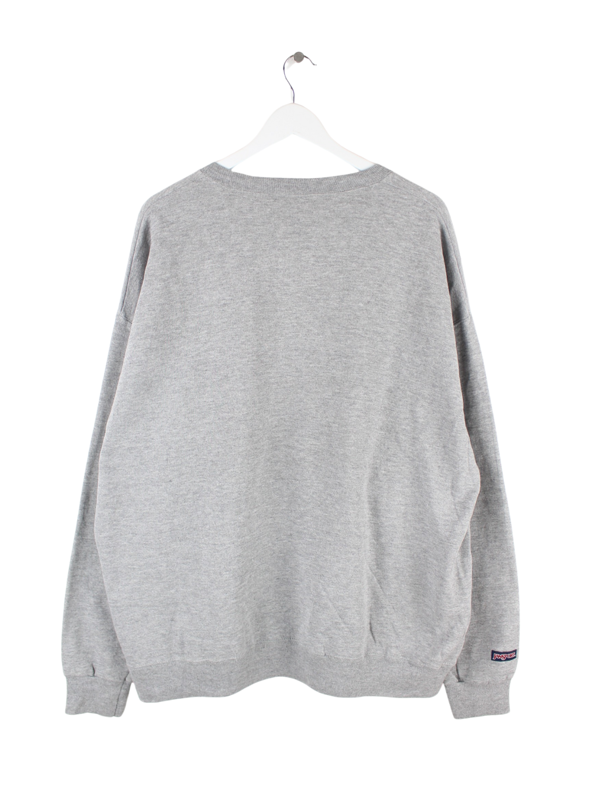 Grauer Sweater mit Stickereien vom Brand Jansport aus den 90'ern in Größe XXL. Er ist aus einer Baumwollmischung gefertigt und in sehr gutem Zustand vorrätig.