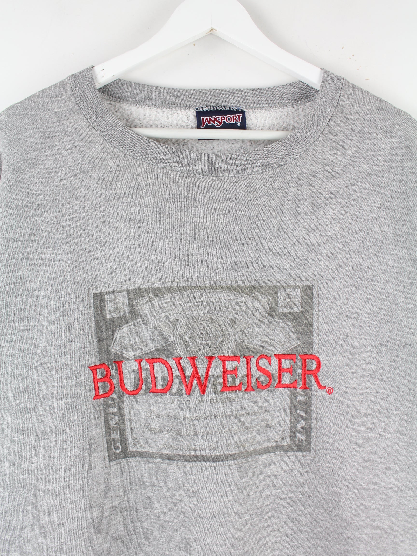 Jansport 90s Vintage Budweiser Embroidered Sweater Grau XXL