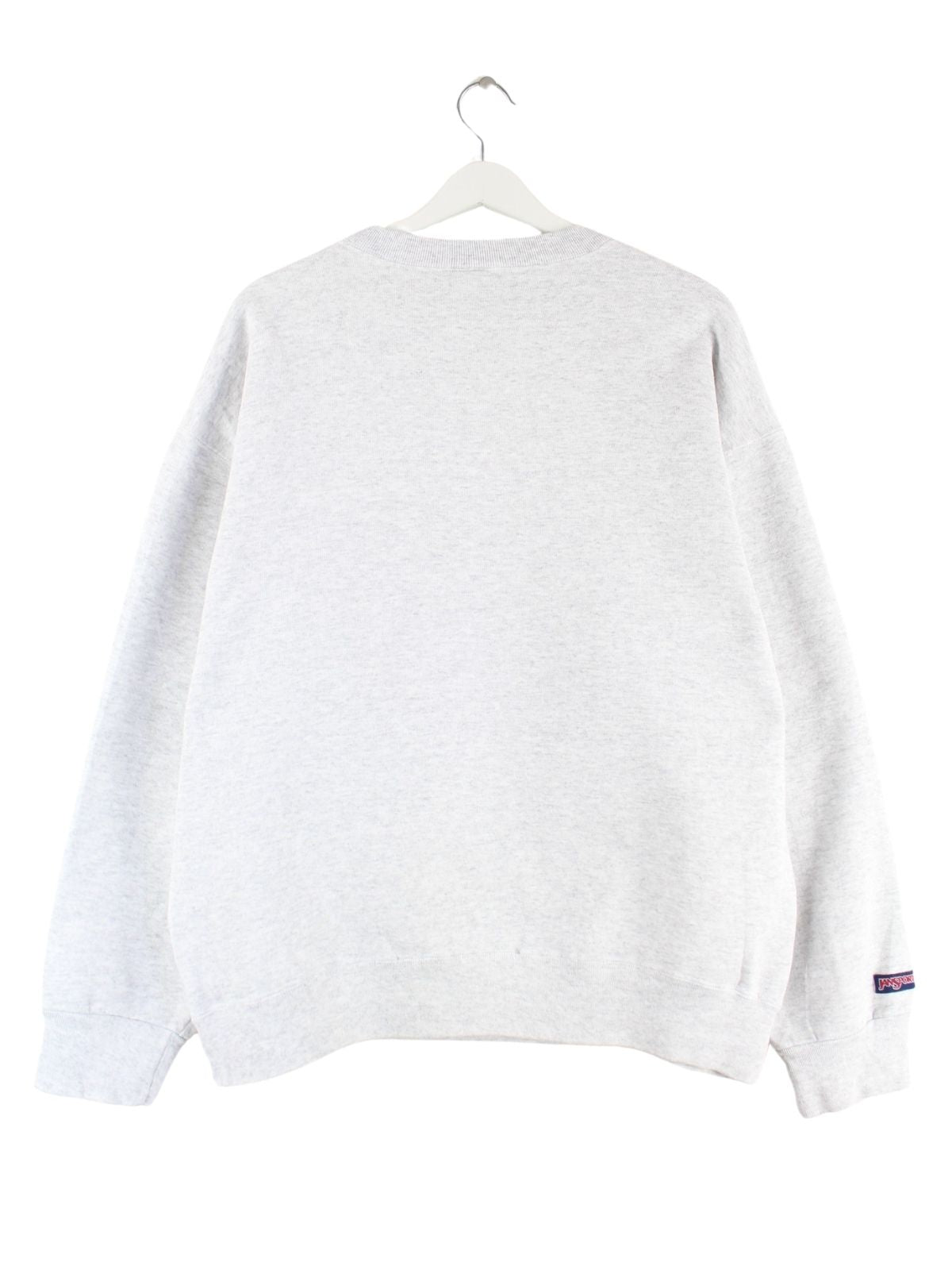 Sweater des Labels Jansport mit Stickereien in Größe XL aus den 90'ern. Er ist aus einer Baumwollmischung hergestellt und in Grau im Angebot.