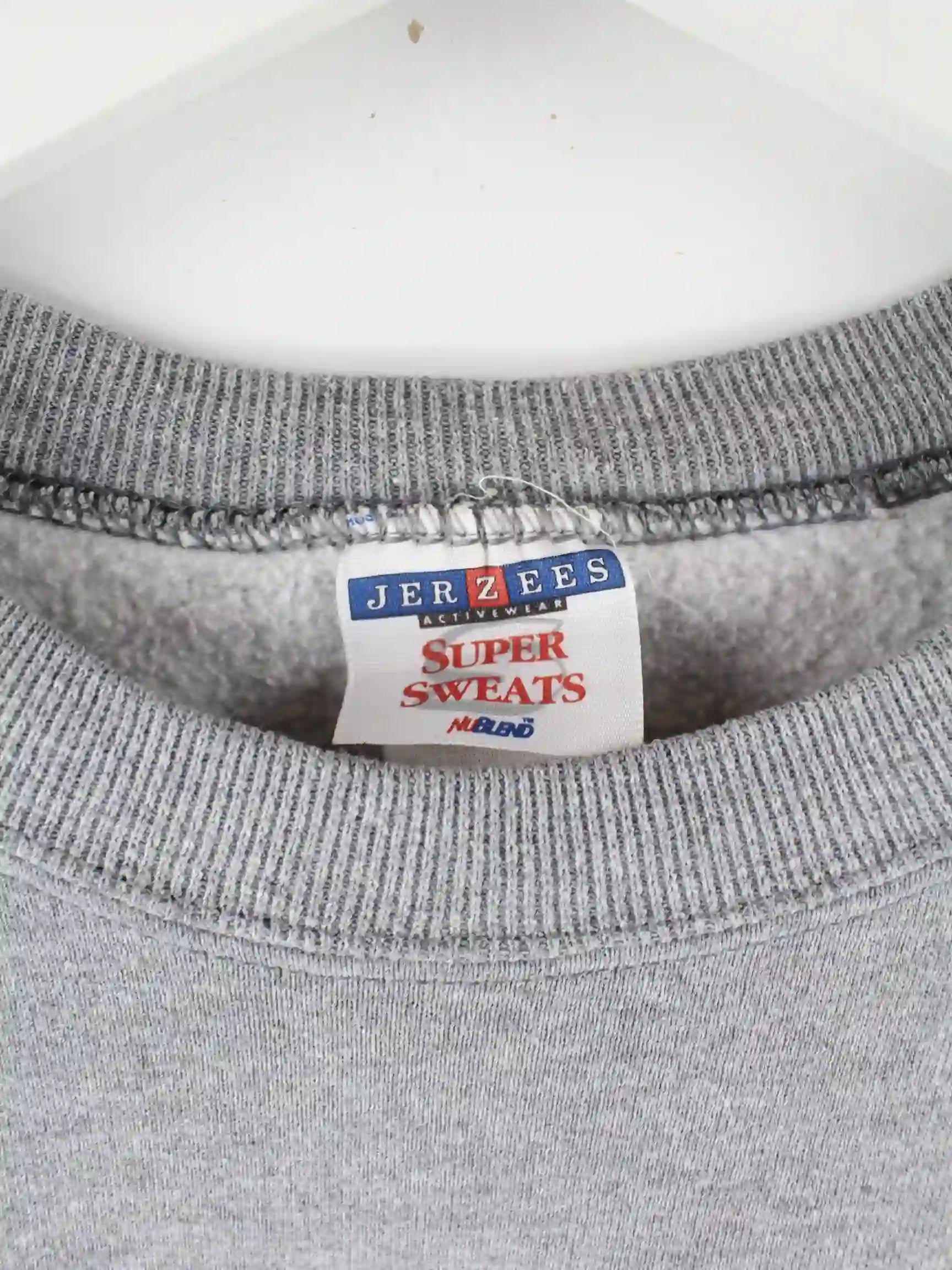 Grauer Sweater vom Brand Jerzees aus den 90'ern in Größe L. Er ist aus einer Baumwollmischung produziert. Den Zustand würden wir als 'In Ordnung' bezeichnen (vergl. Bilder).Mit seltenem Wisconsin Print.