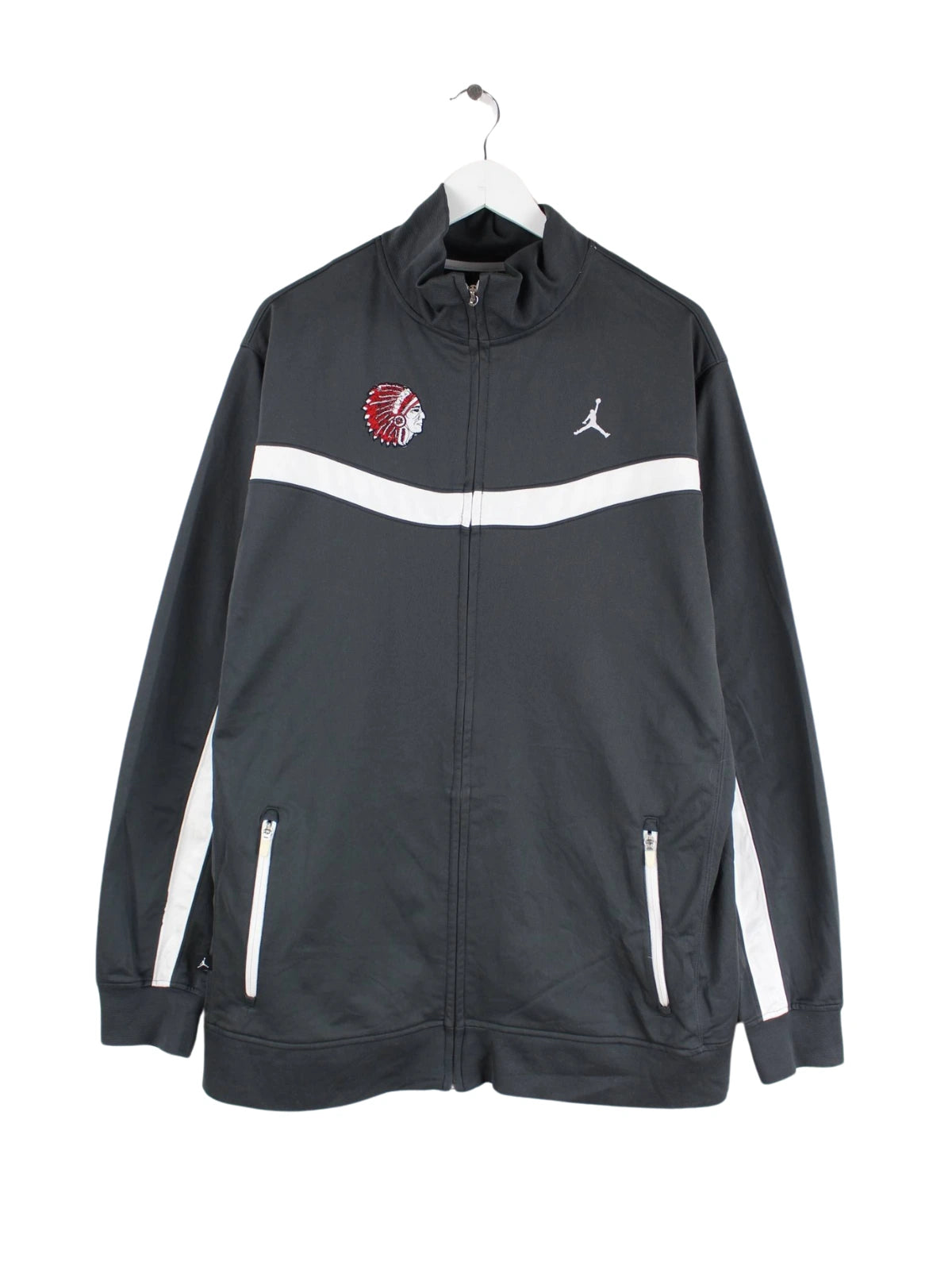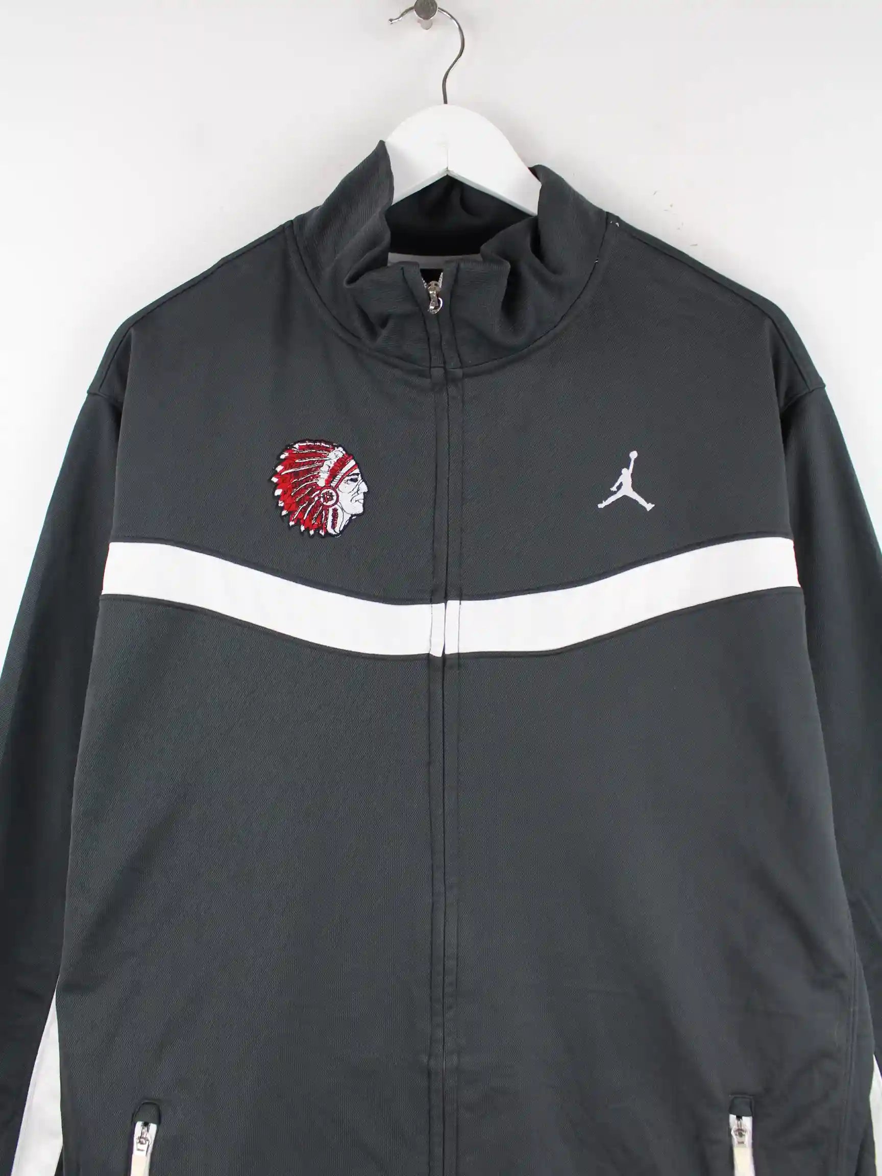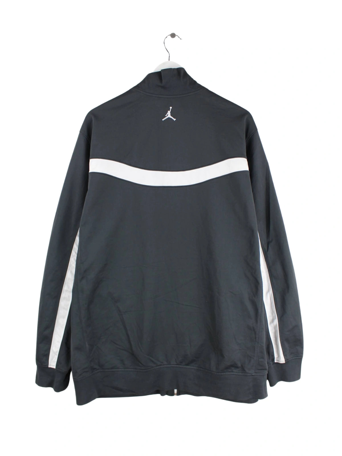 Graue Trainingsjacke mit Stickereien des Labels Jordan in Größe 3XL. Sie ist aus Synthetik angefertigt und in sehr gutem Zustand im Angebot.