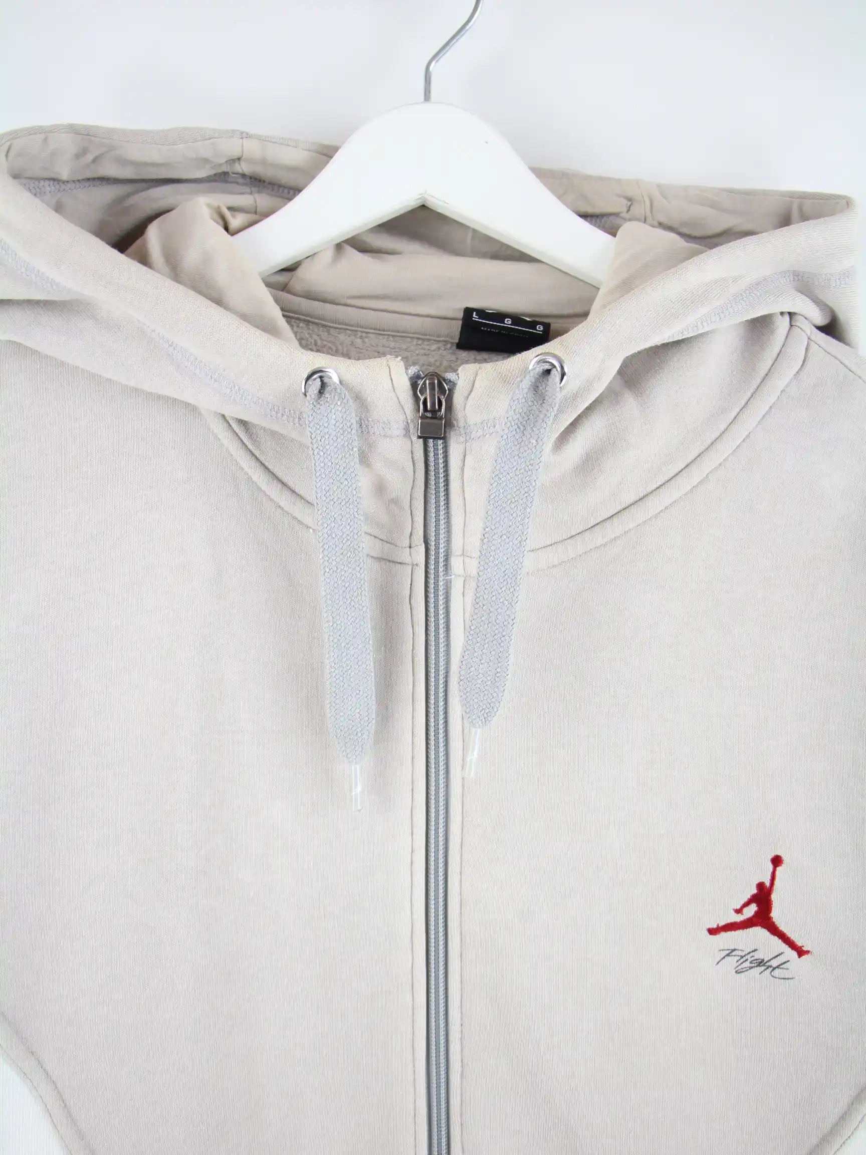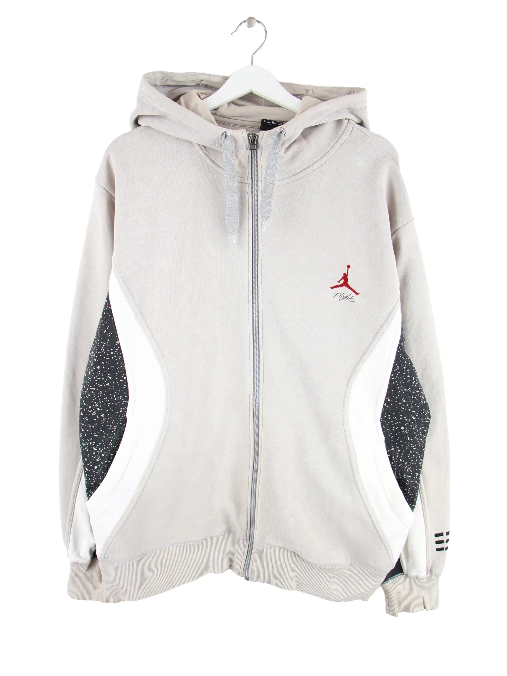 Hoodie der Brand Jordan in Größe L. Er ist aus einer Baumwollmischung angefertigt und in Beige zu haben. Mit schickem Flight Print.