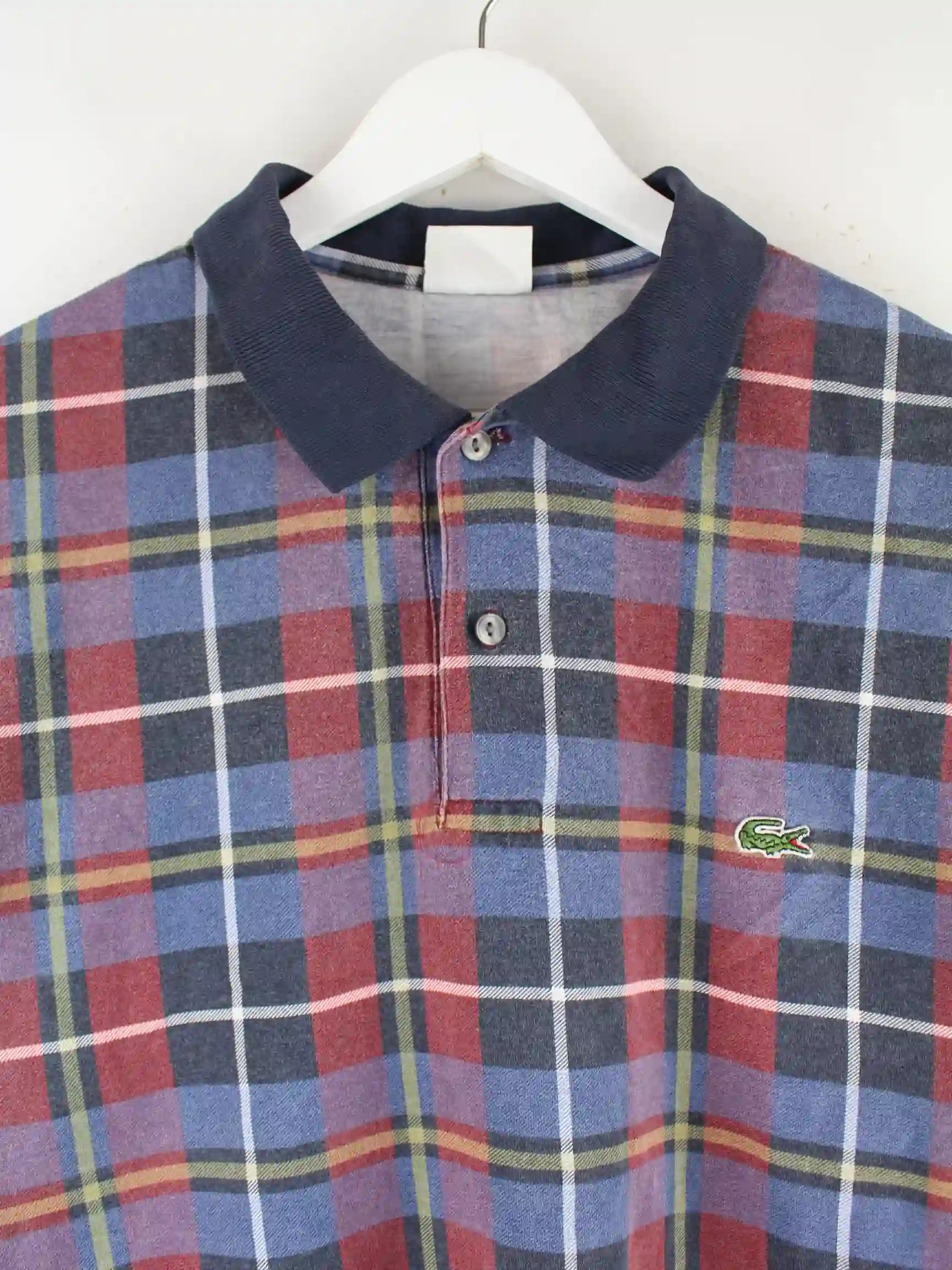 Mehrfarbiges Poloshirt aus dem Hause Lacoste aus den 90'ern in Größe XL. Es ist aus Baumwolle produziert und in sehr gutem Zustand zu bekommen.
