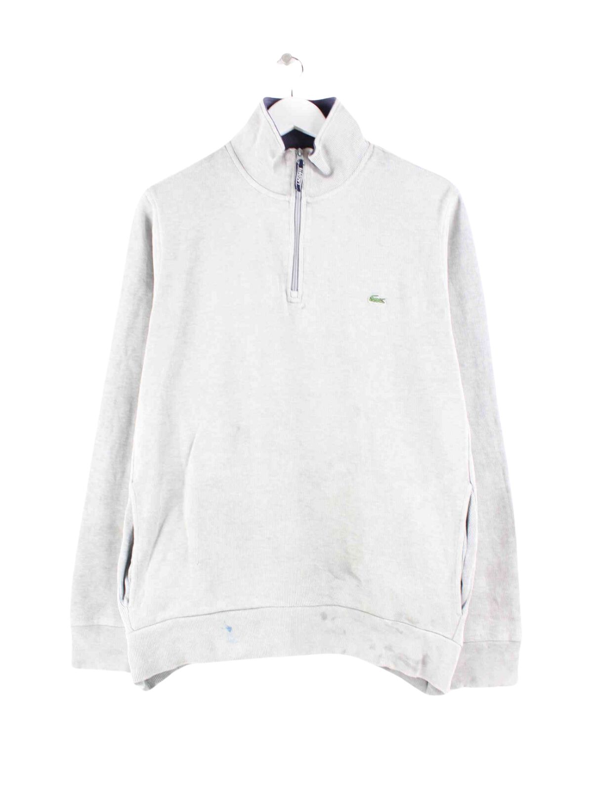 Sweater from the Lacoste brand with a half zip in size L. It is made from a cotton blend and is available in gray.