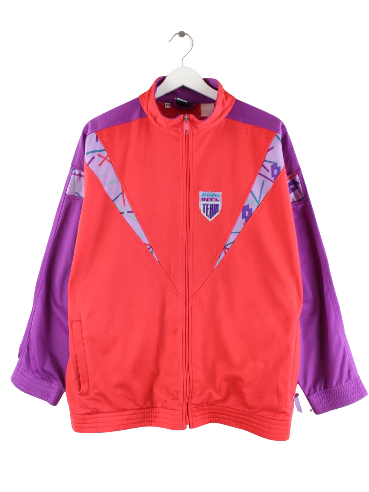 Trainingsjacke vom Label Lotto in Größe XL aus den 90'ern. Sie ist aus Synthetik gefertigt und in Rot vorrätig.
