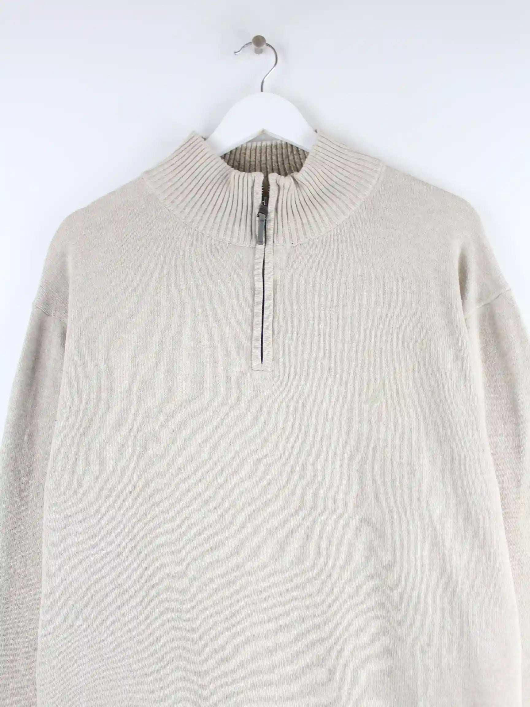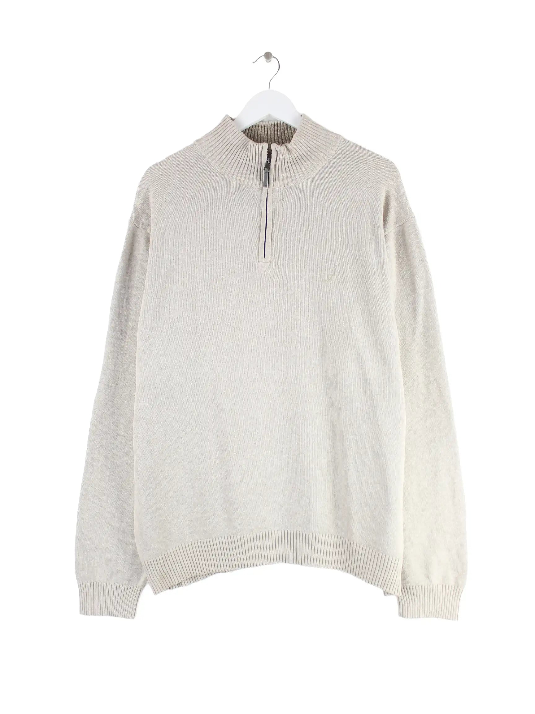 Pullover aus dem Hause Nautica mit halbem Reißverschluß in Größe L. Er ist aus Baumwolle gemacht und in Beige zu haben.