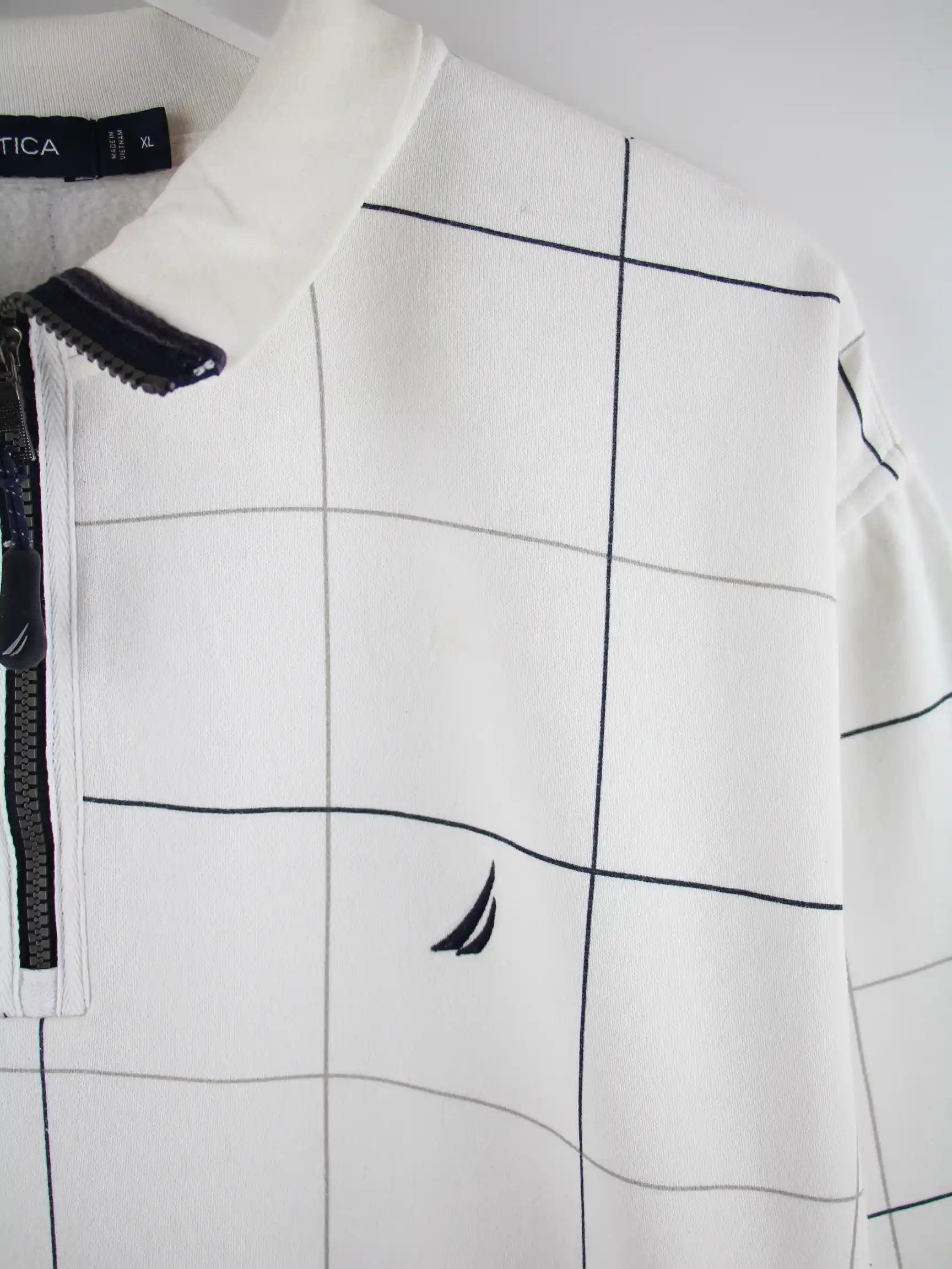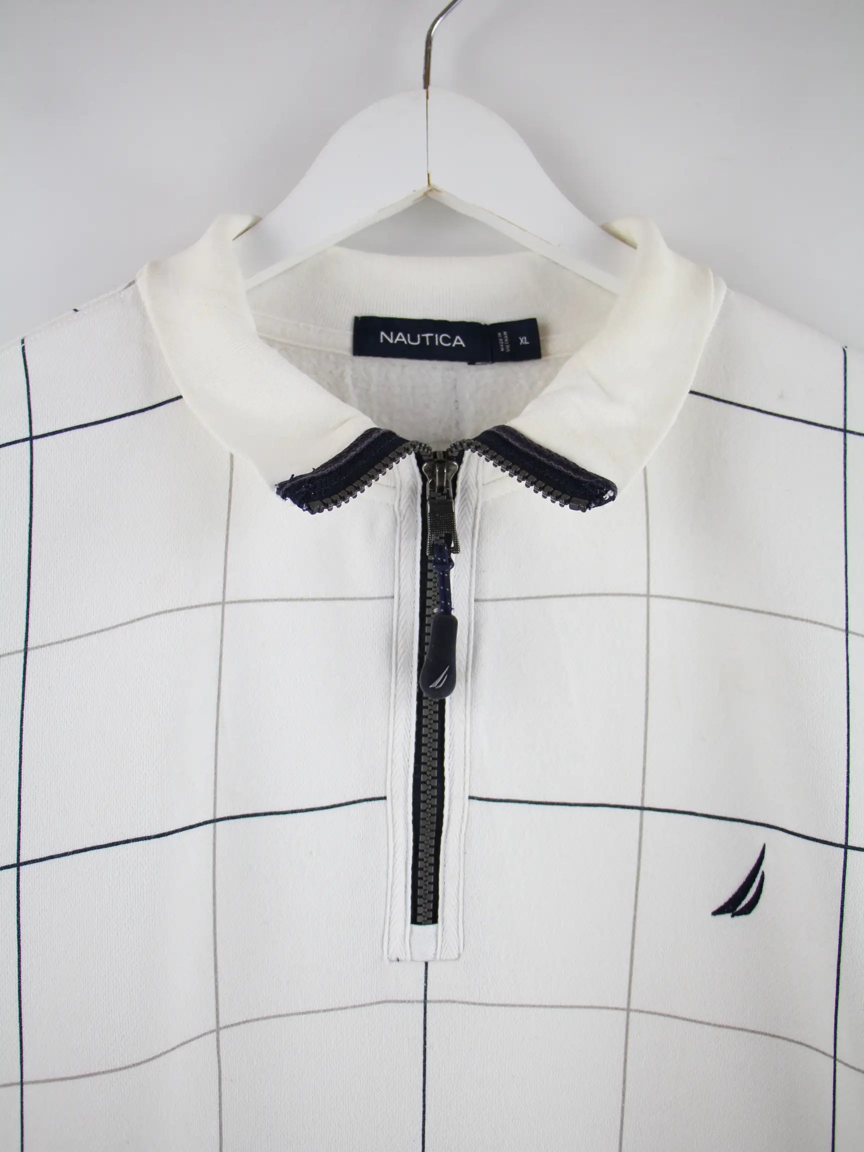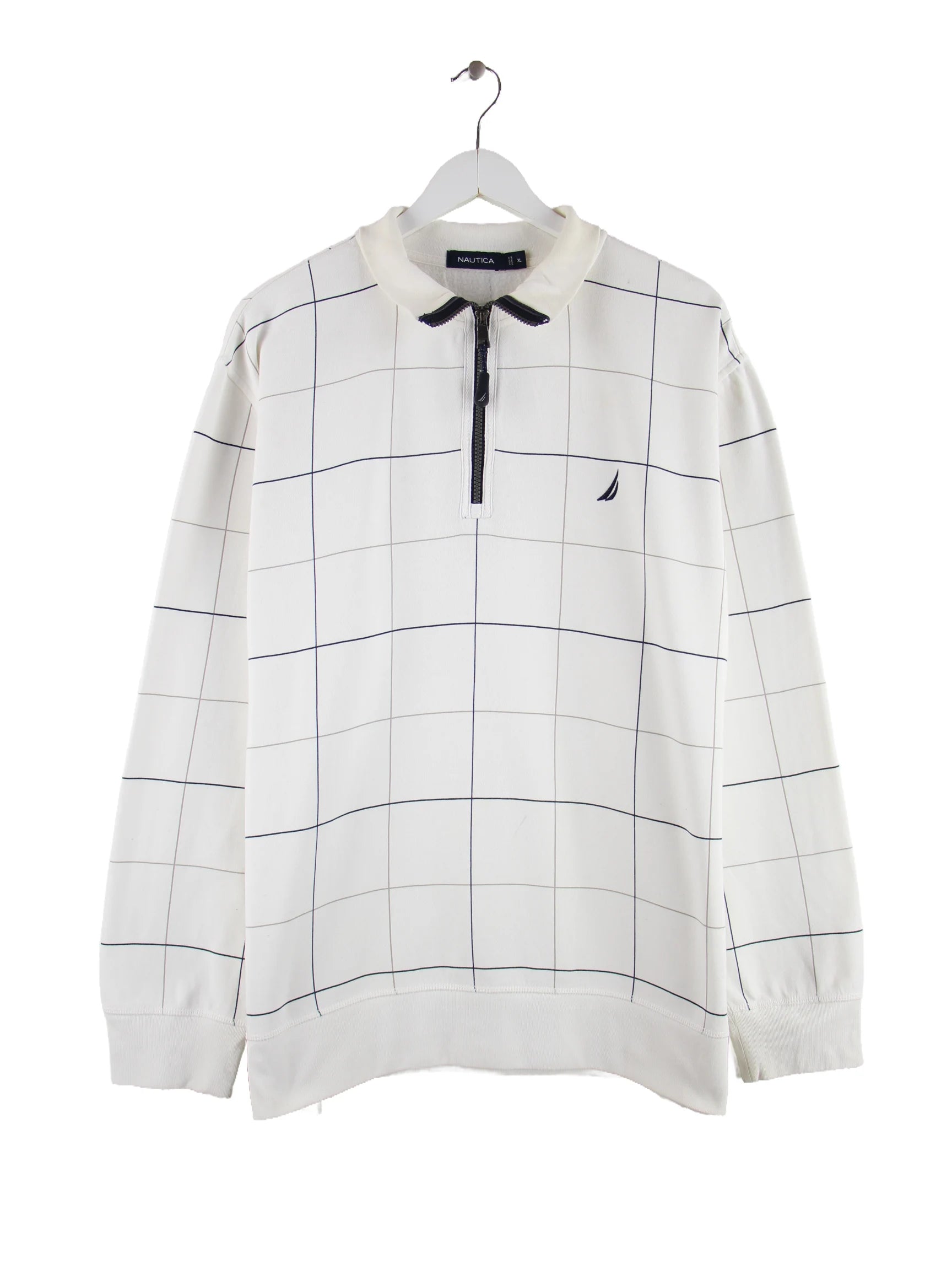 Weißer Sweater mit half Zip aus dem Hause Nautica in Größe XL. Er ist aus einer Baumwollmischung . Den Zustand würden wir als 'In Ordnung' bezeichnen (vergl. Bilder).