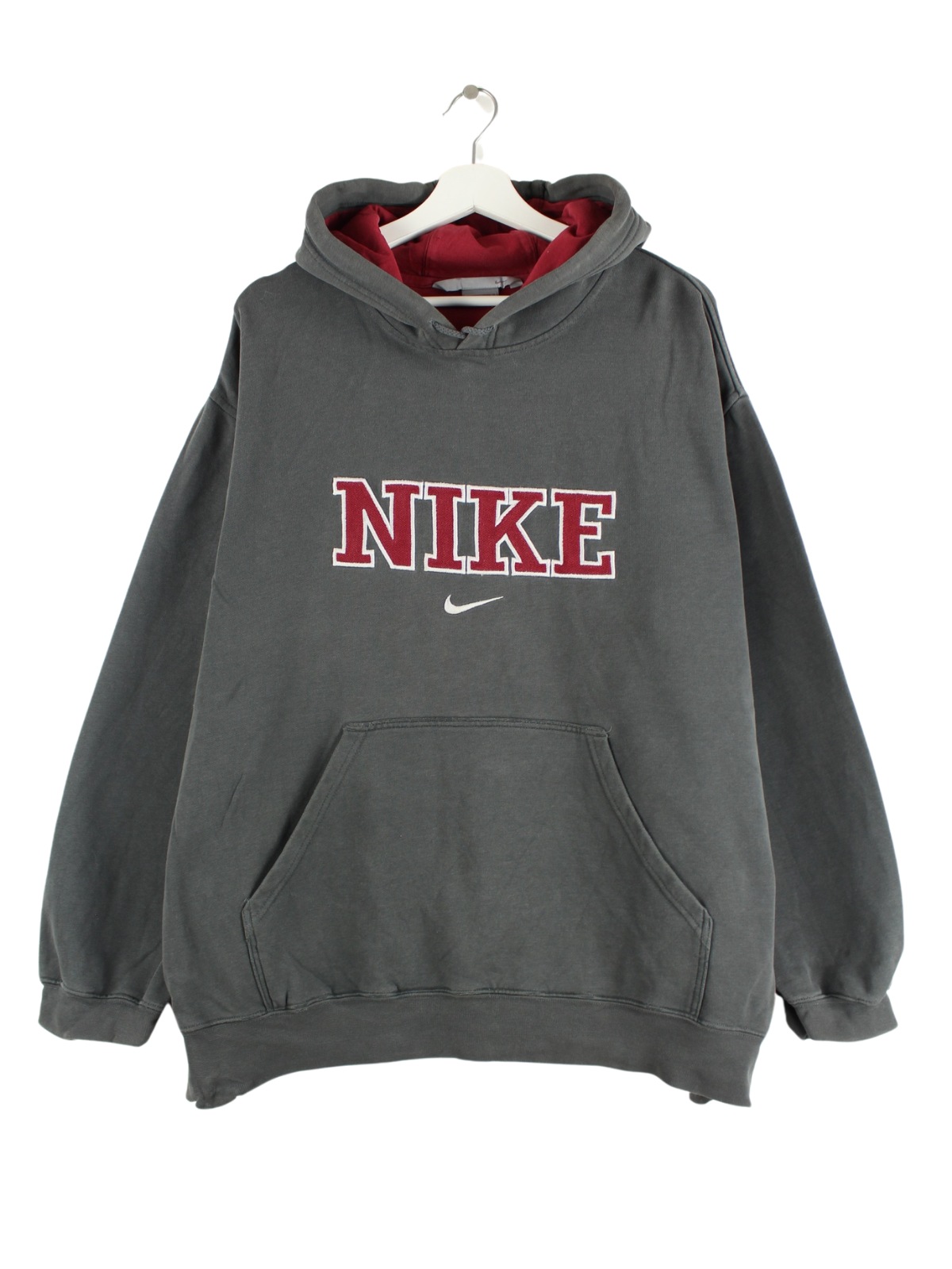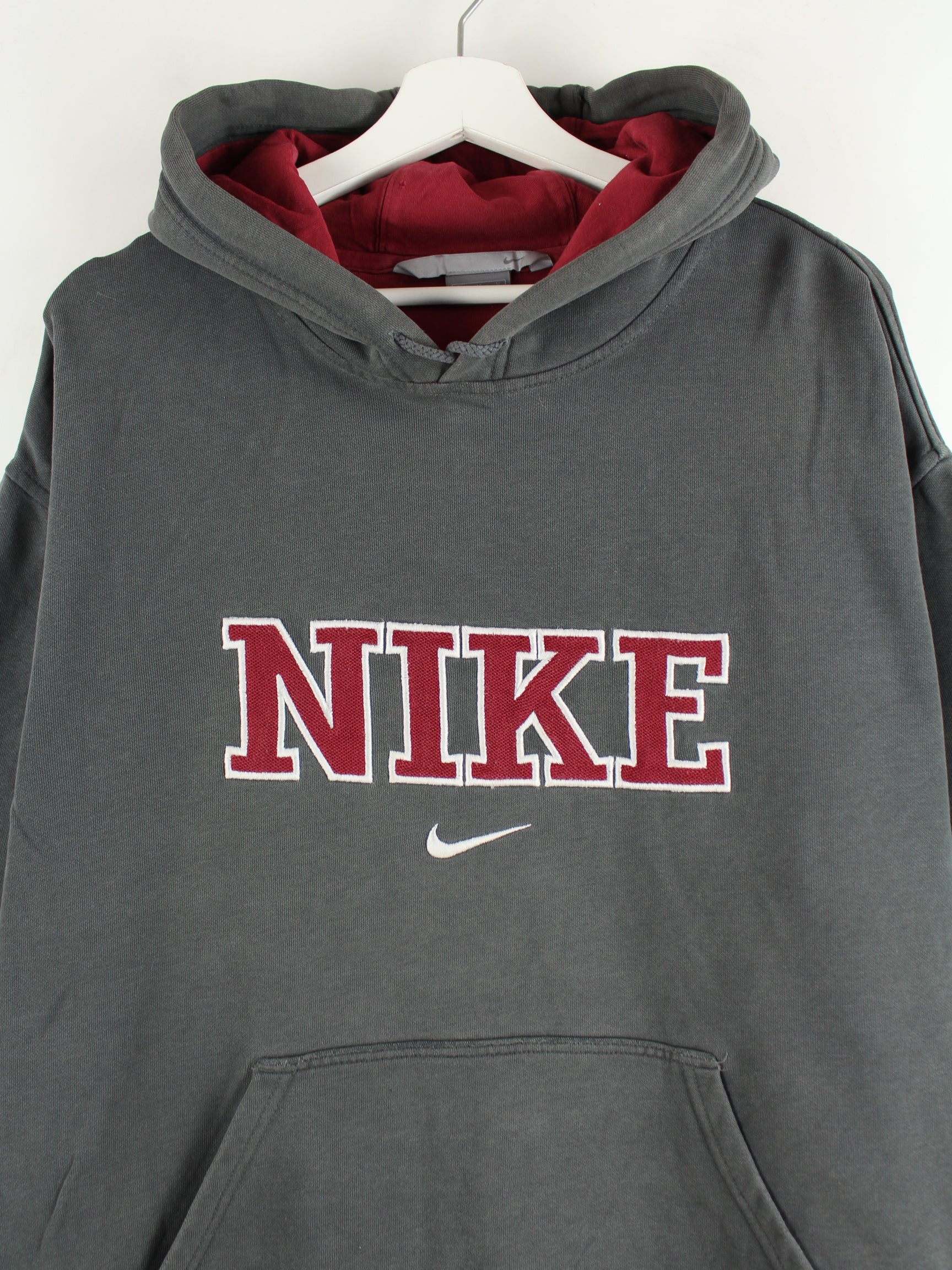 Grey hoodie with embroidery from Nike in size XL. It is made from a cotton blend and is in good condition.