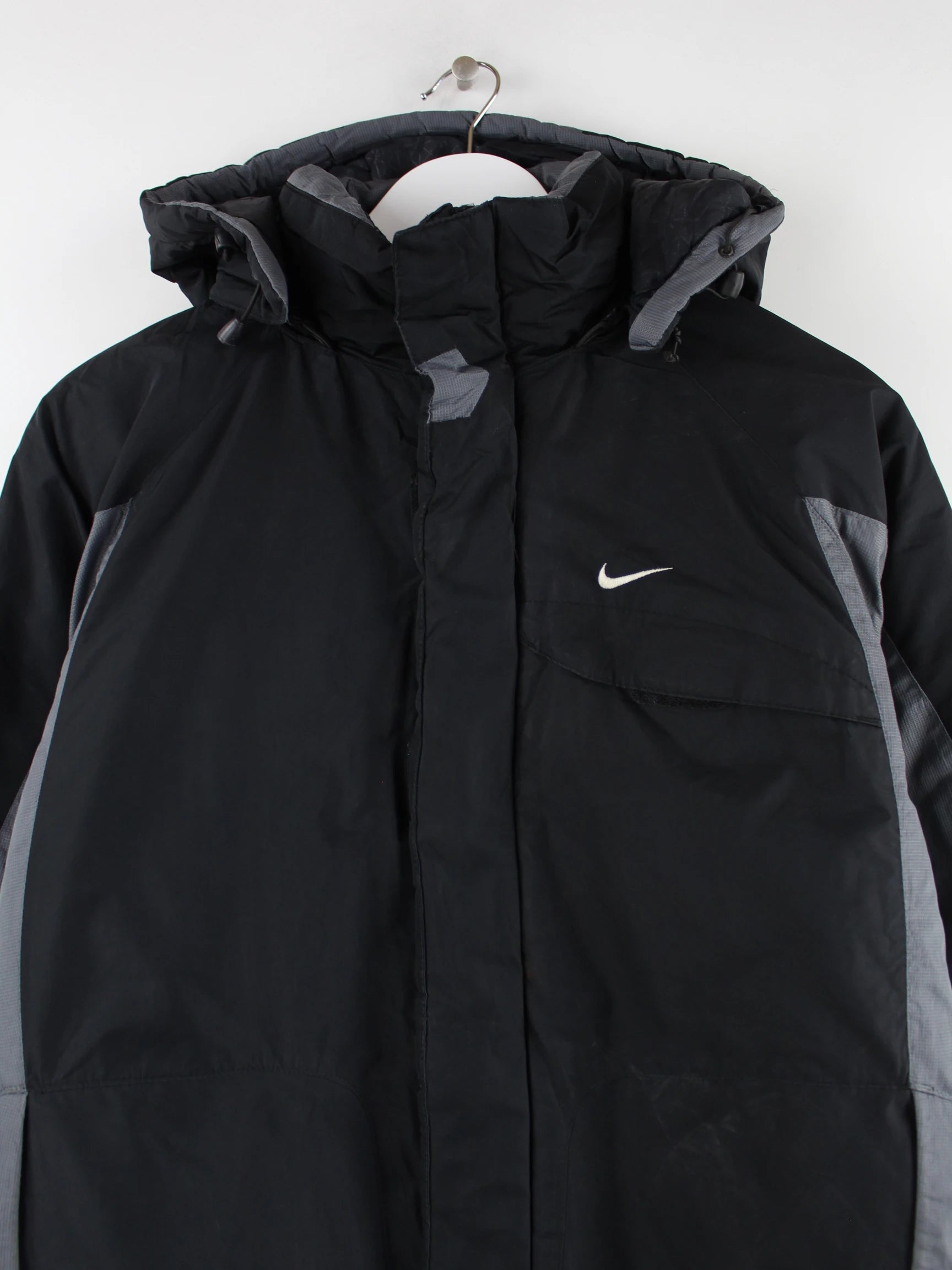 Schwarz graue Nike Winterjacke aus den 2000er Jahren in Größe S.