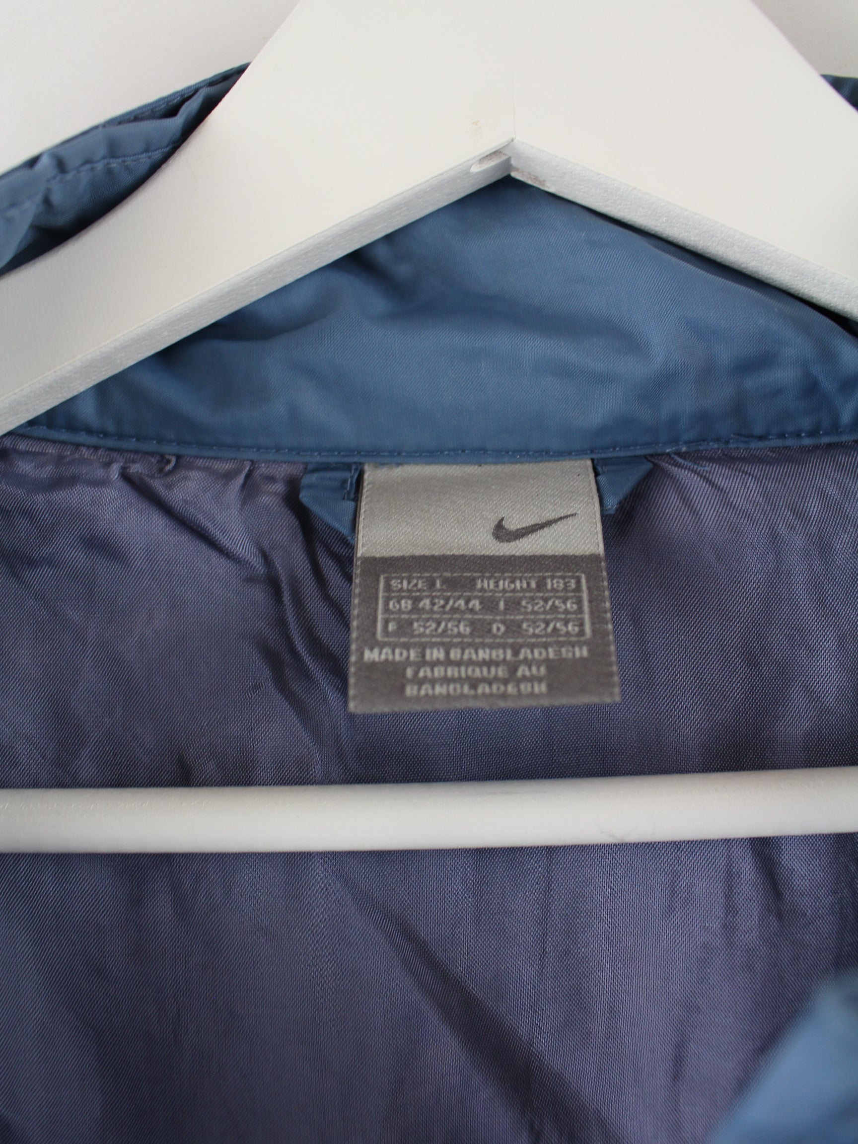 Blue light jacket from the label Nike in size L. It is made of synthetic material and in good condition in stock.