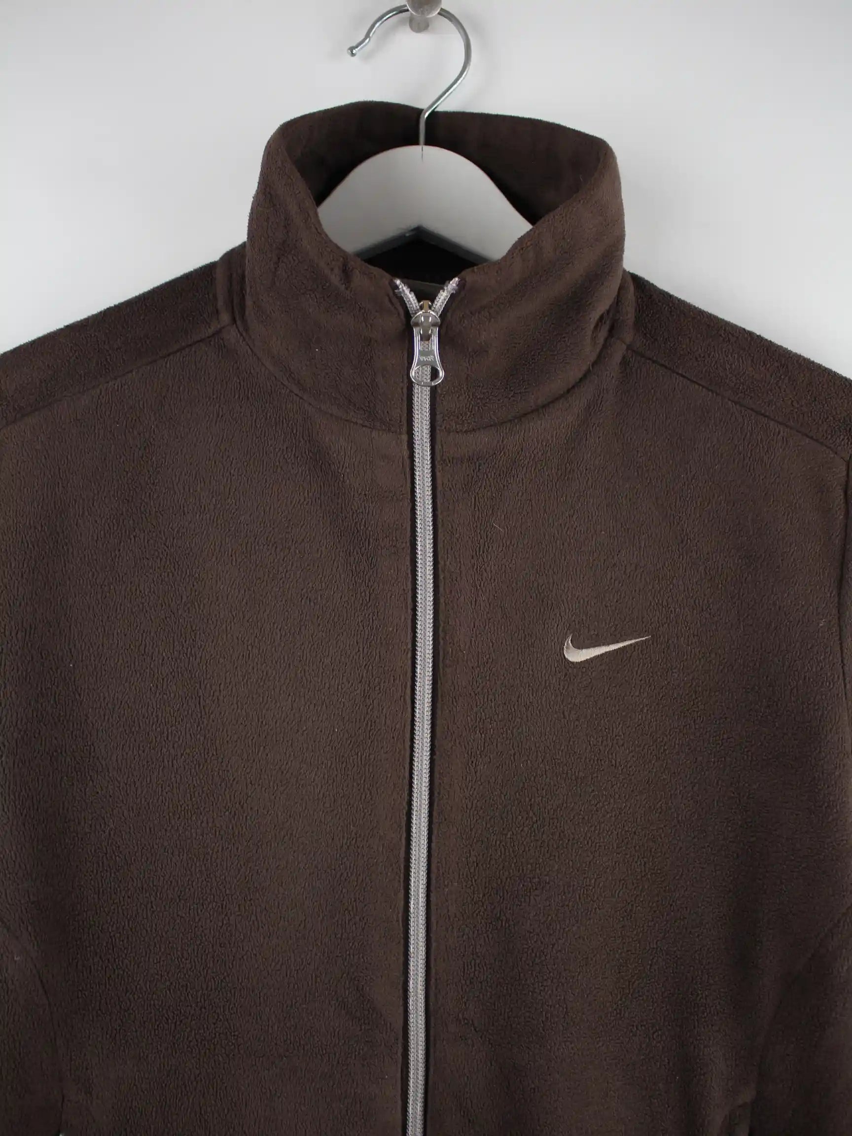 Braune Leichte Jacke von Nike in Größe S. Sie ist aus behaglichem Fleece und in gutem Zustand vorrätig.
