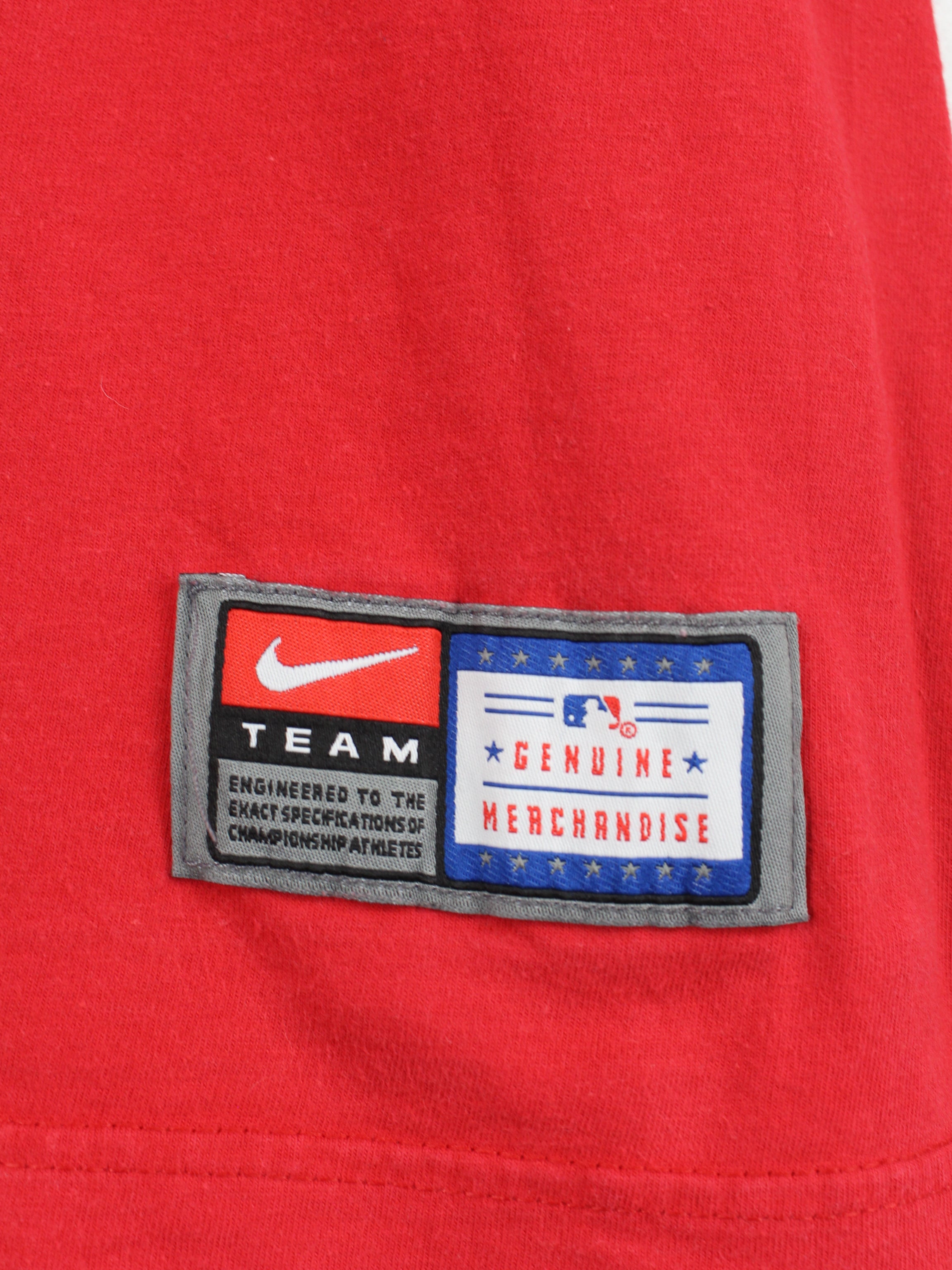 Red Nike MLB Baseball Middle Swoosh T-Shirt of the Boston Red Sox.