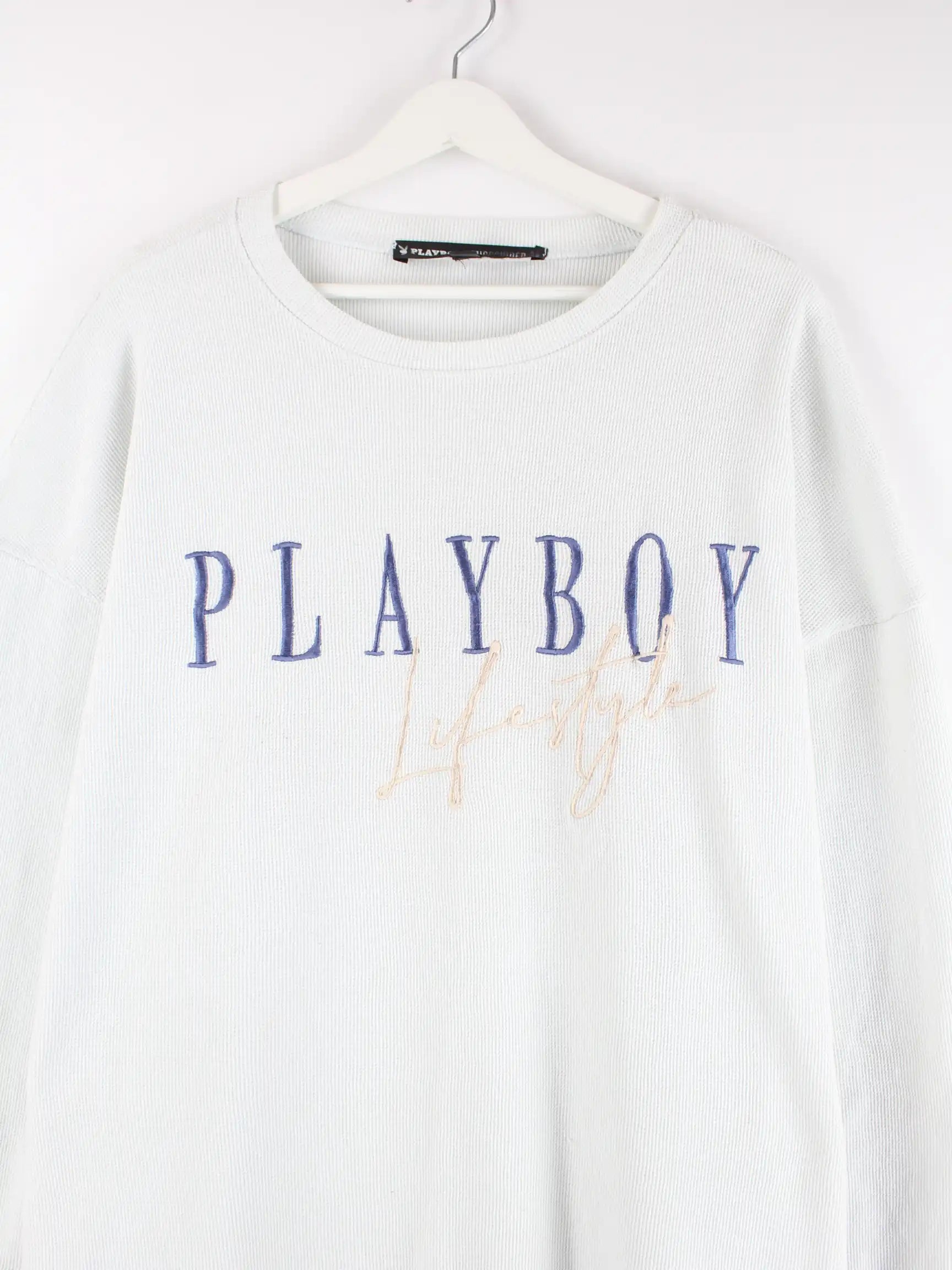 Weißer Sweater der Marke Playboy in Größe XL. Er ist aus einer Baumwollmischung gefertigt und in sehr gutem Zustand in Stock.
