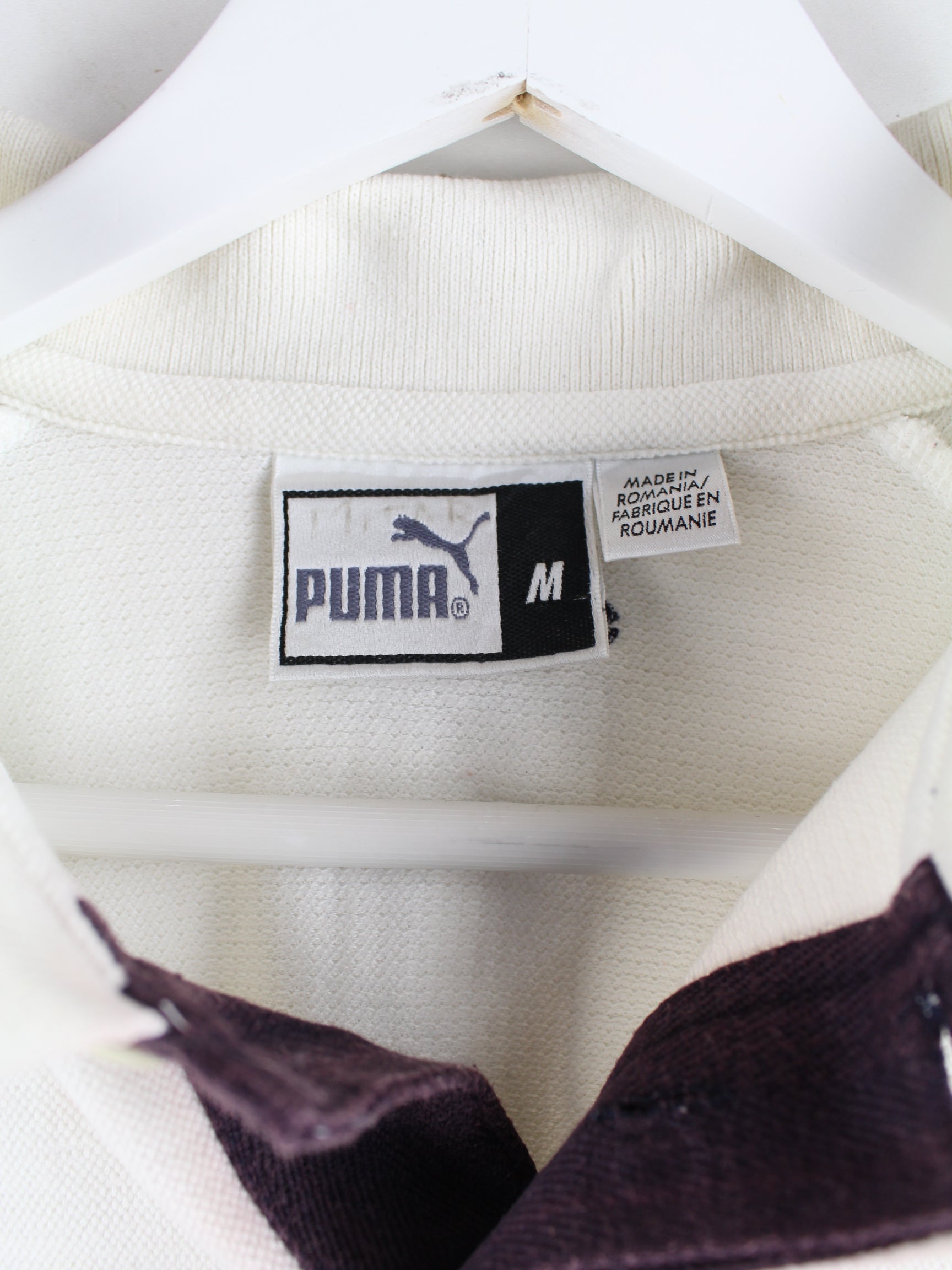 Weißes Poloshirt mit Stick des Labels Puma in Größe M. Es ist aus Baumwolle hergestellt. Den Zustand würden wir als 'In Ordnung' bezeichnen (vergl. Bilder).