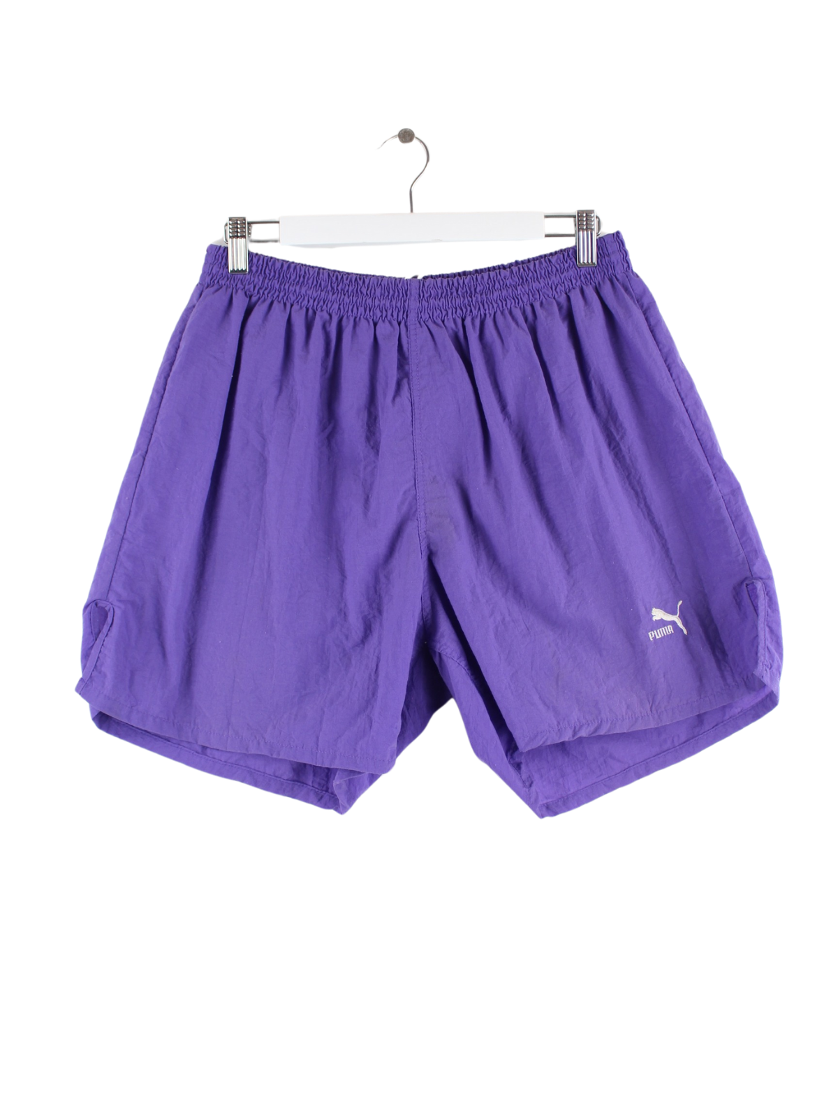 Shorts from the Puma label in size XL from the 80's. They are made of synthetic material and are available in purple.