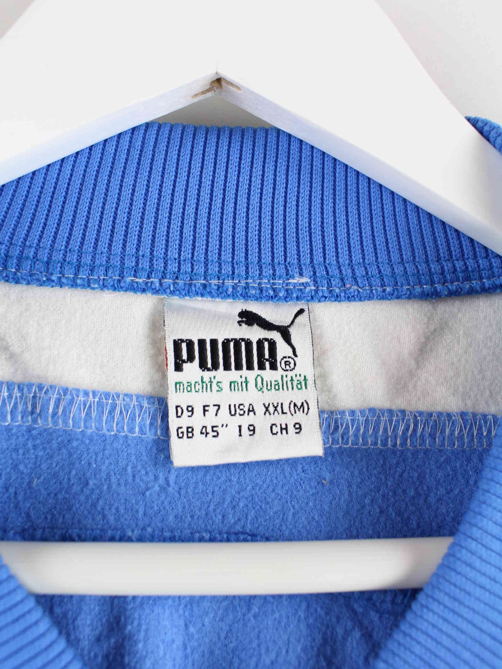 Blue training jacket from the Puma label from the 80s in size L. It is made of synthetic material and is in very good condition.