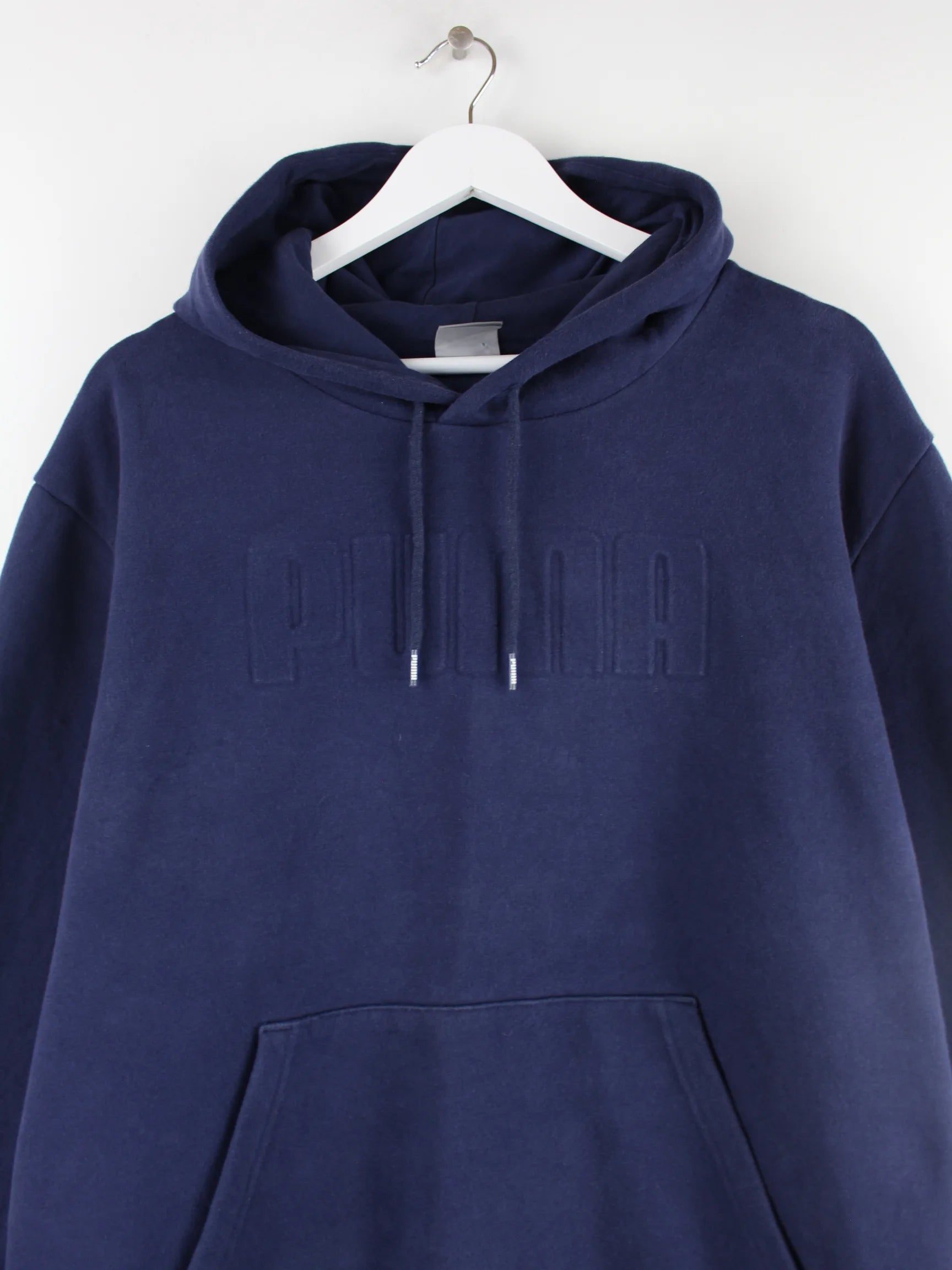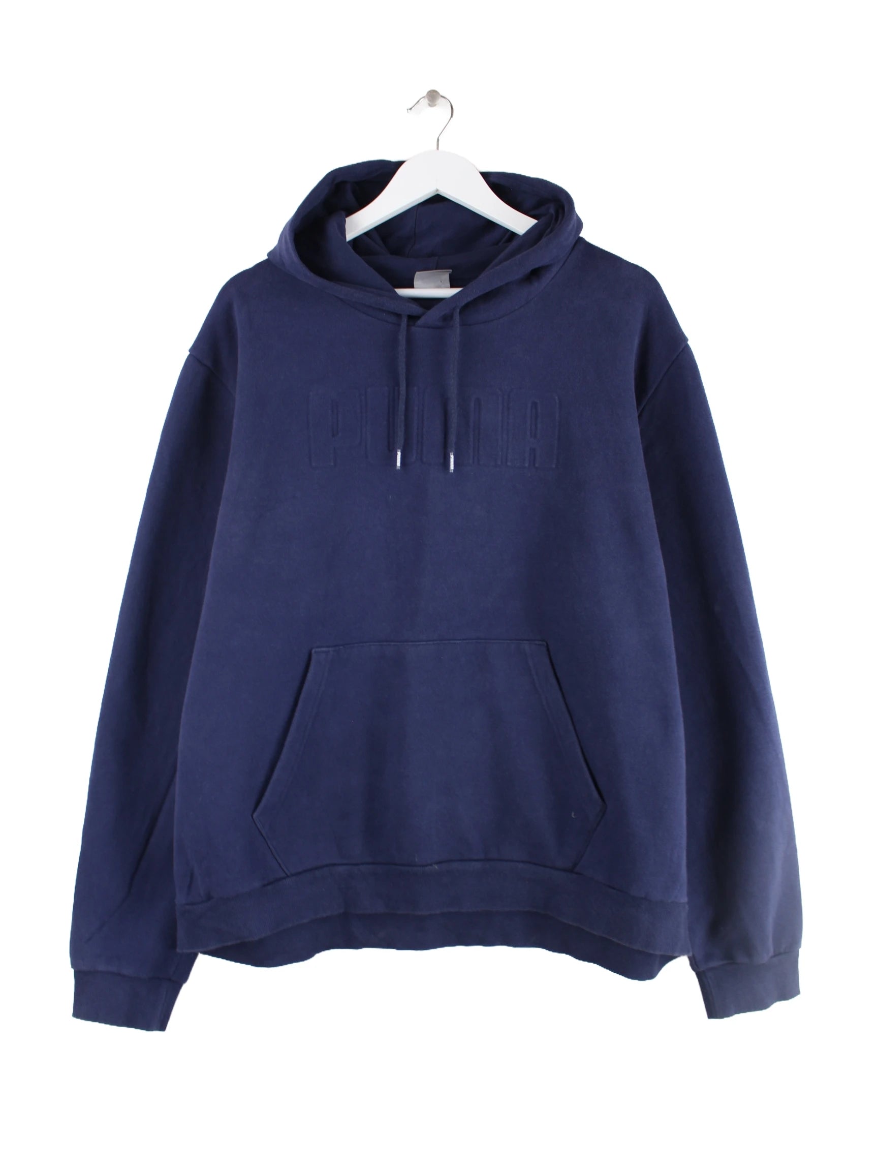 Hoodie des Labels Puma in Größe XXL. Er ist aus einer Baumwollmischung gefertigt und in Blau bei uns vorrätig. Mit schickem Logo Print.