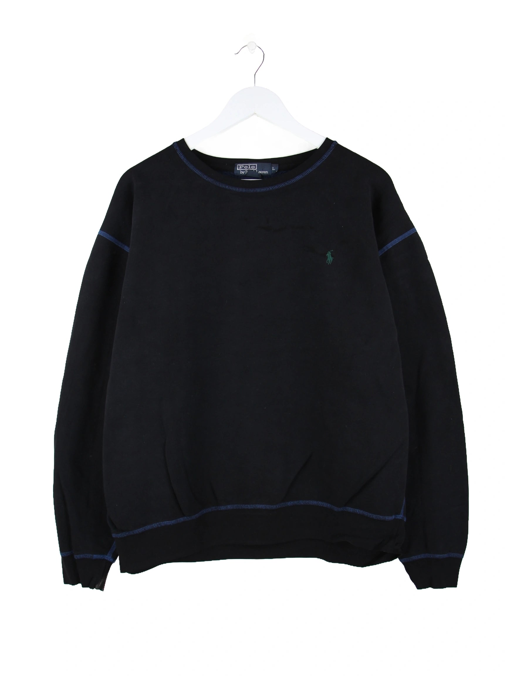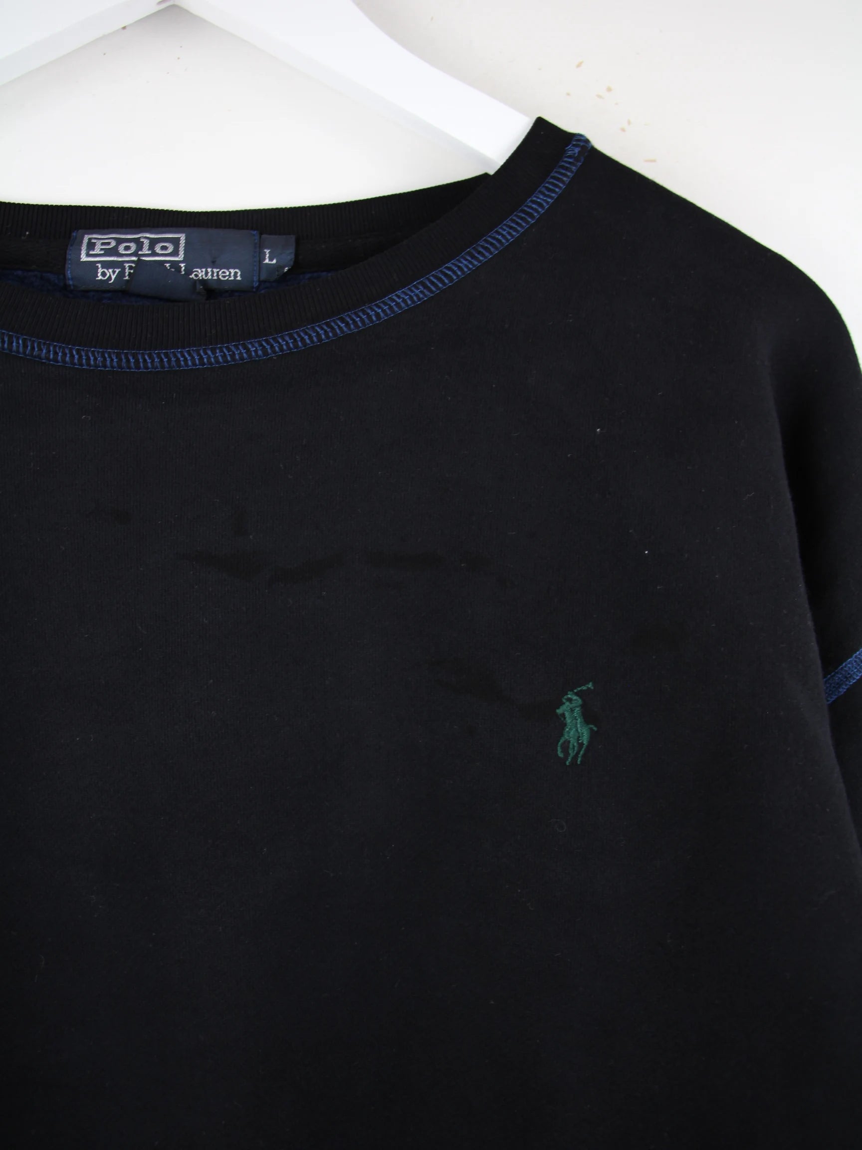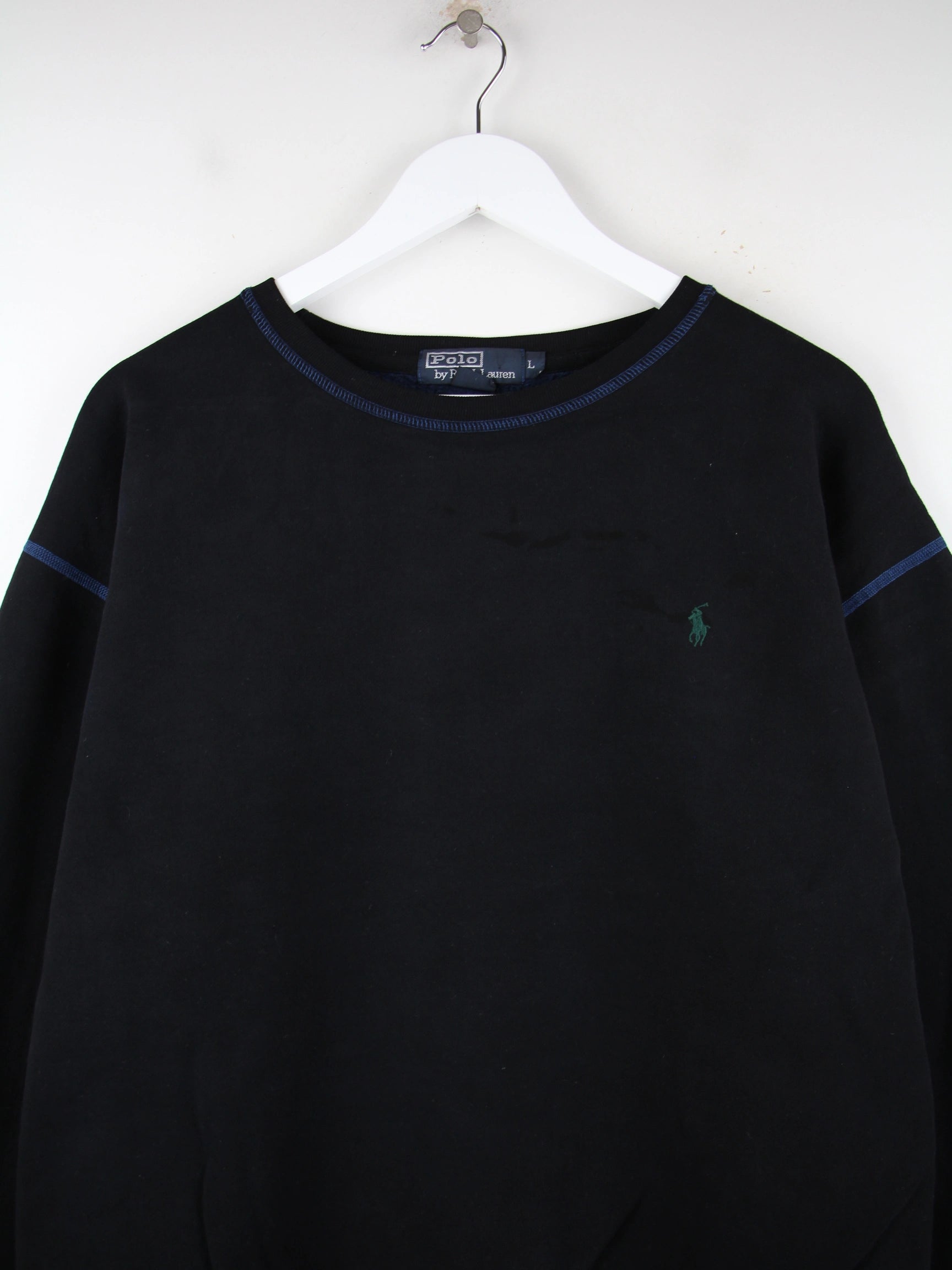 Schwarzer Sweater vom Label Ralph Lauren in Größe L. Er ist aus einer Baumwollmischung . Den Zustand würden wir als 'In Ordnung' bezeichnen (vergl. Bilder).