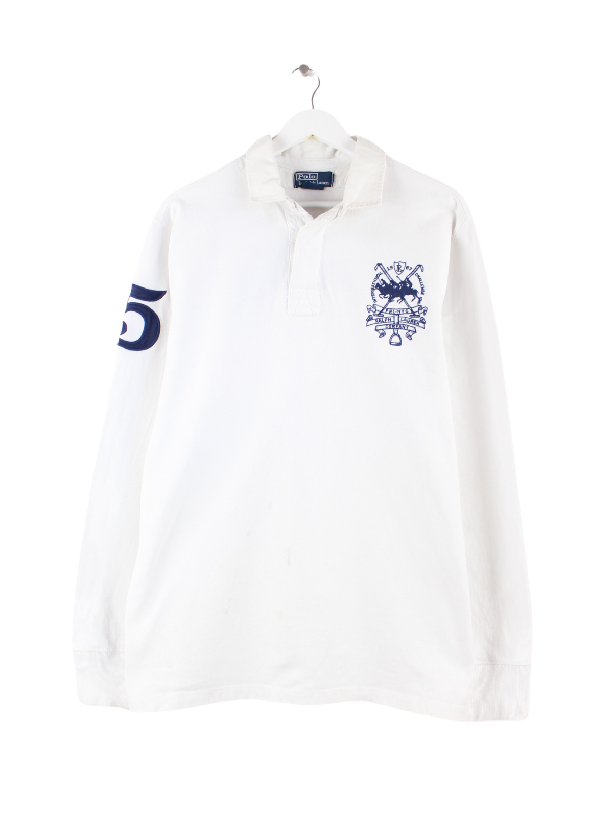 Ralph Lauren 90s Vintage Embroidered Long Sleeve Polo White L