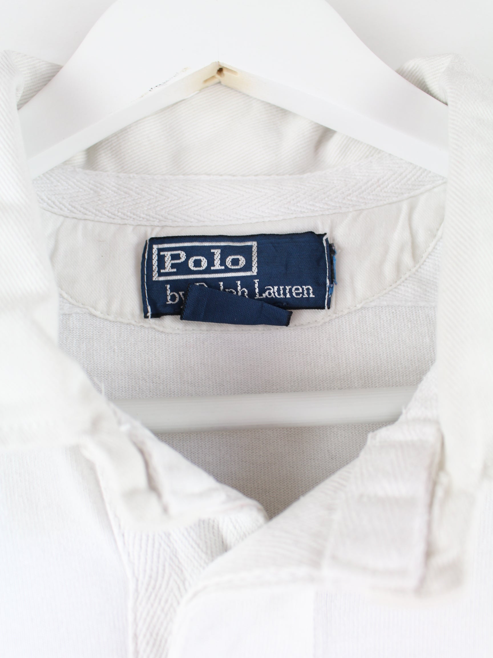 White polo shirt with embroidery from the Ralph Lauren label from the 90's in size L. It is made of cotton and is in good condition.