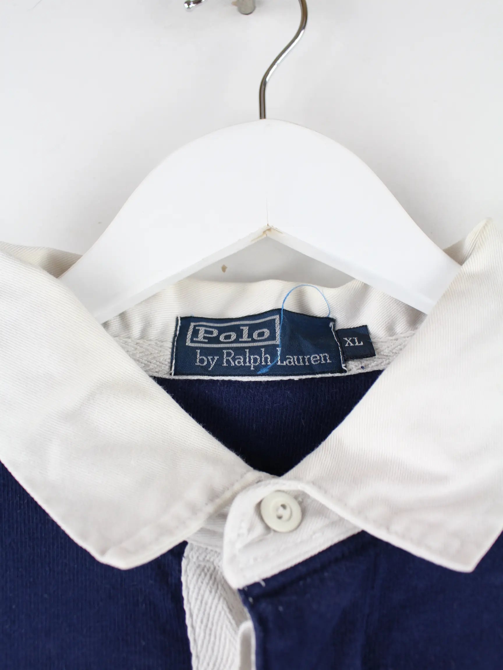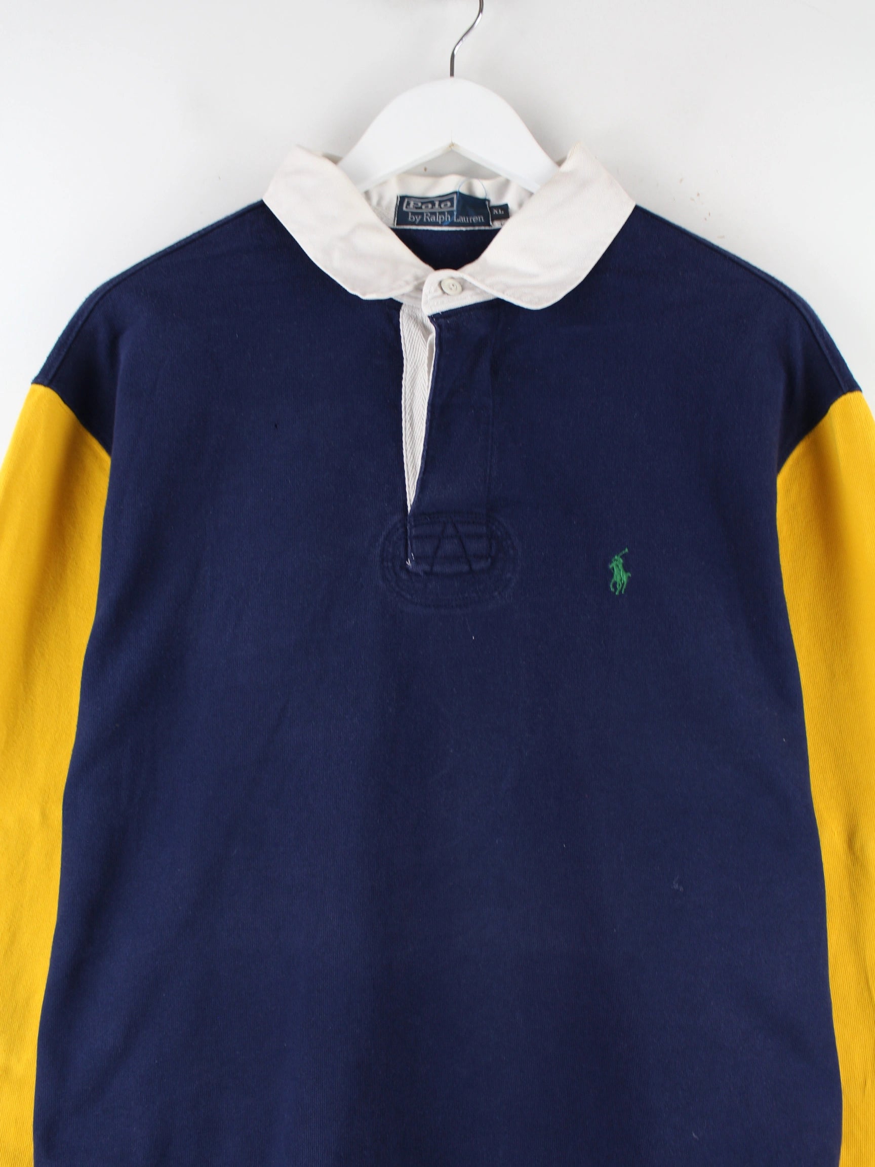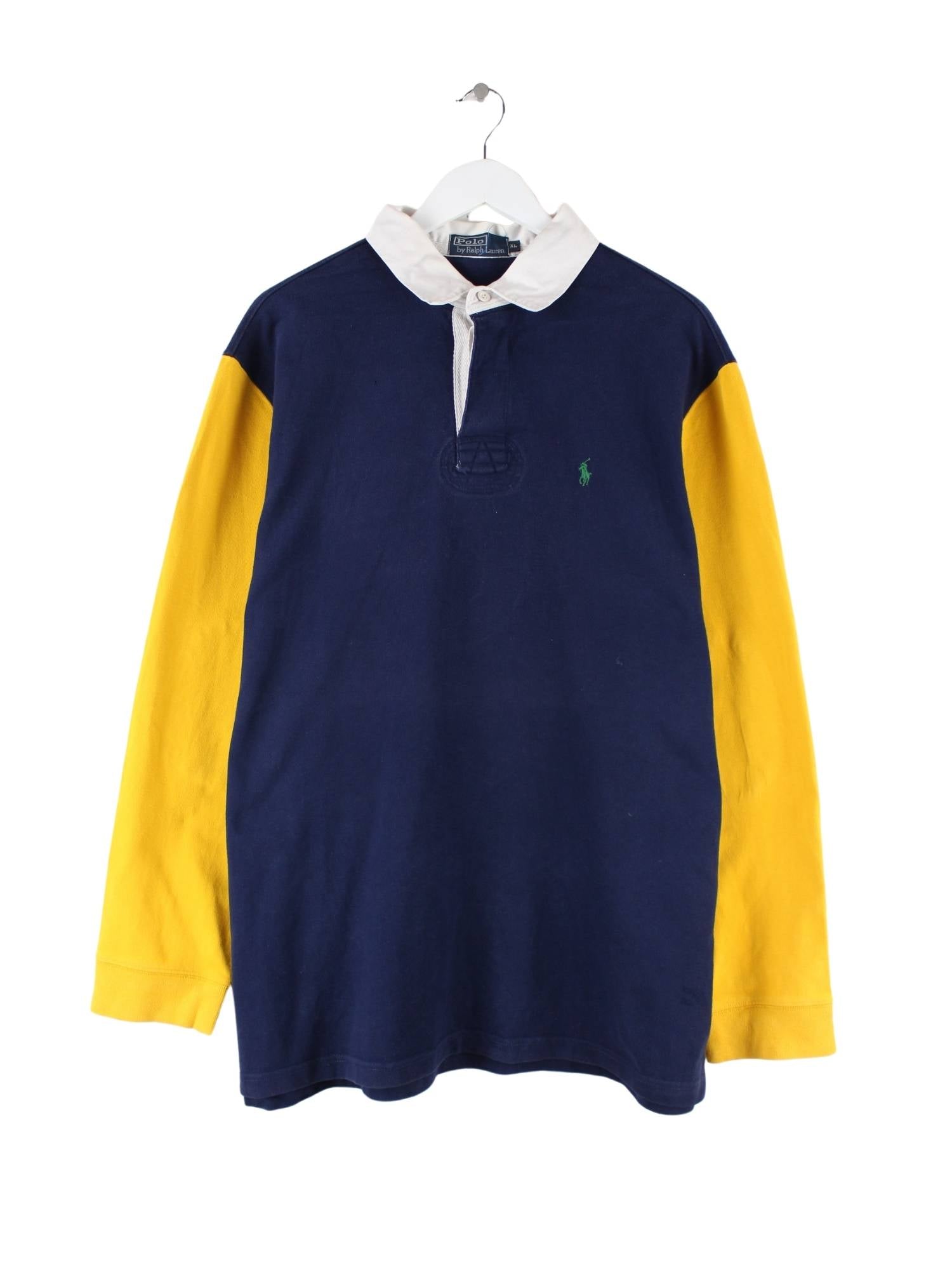 Ralph Lauren 90s Vintage Rugby Langarm Polo Blau XL
