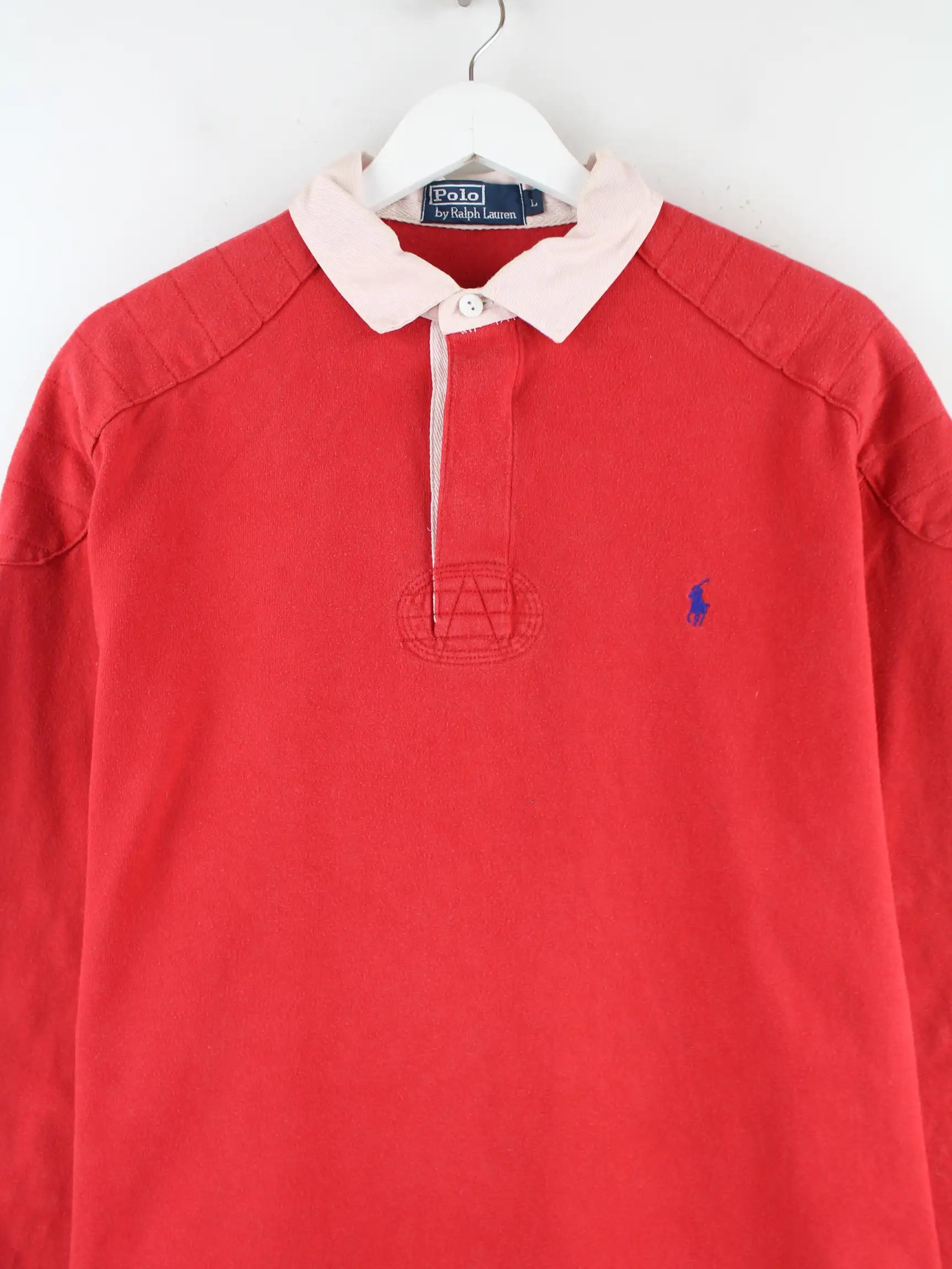 Ralph Lauren 90s Vintage Rugby Langarm Polo Rot L