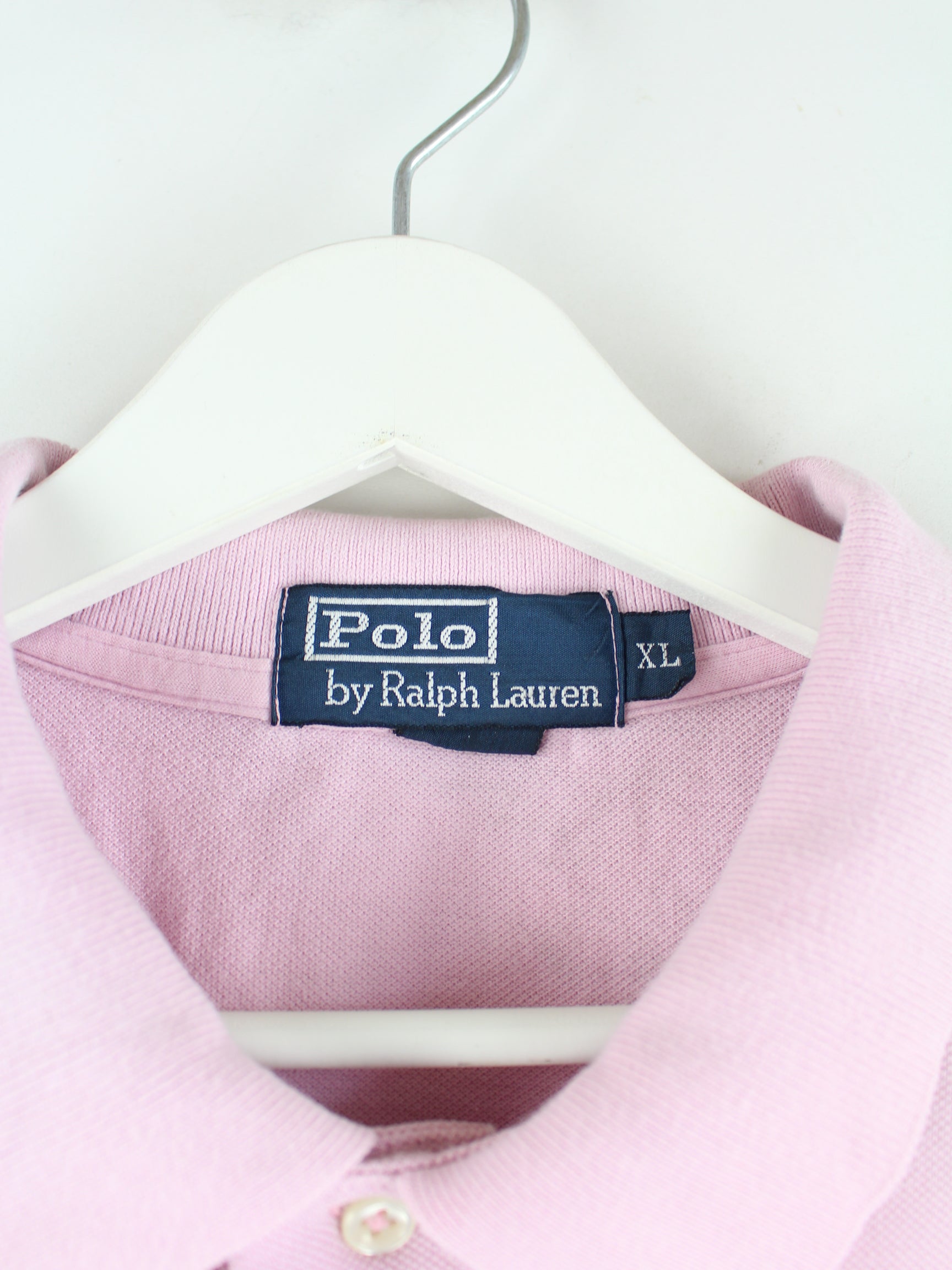 Pink polo shirt by Ralph Lauren from the 90's in size XL. It is made of cotton. We would describe the condition as 'fine' (see pictures).