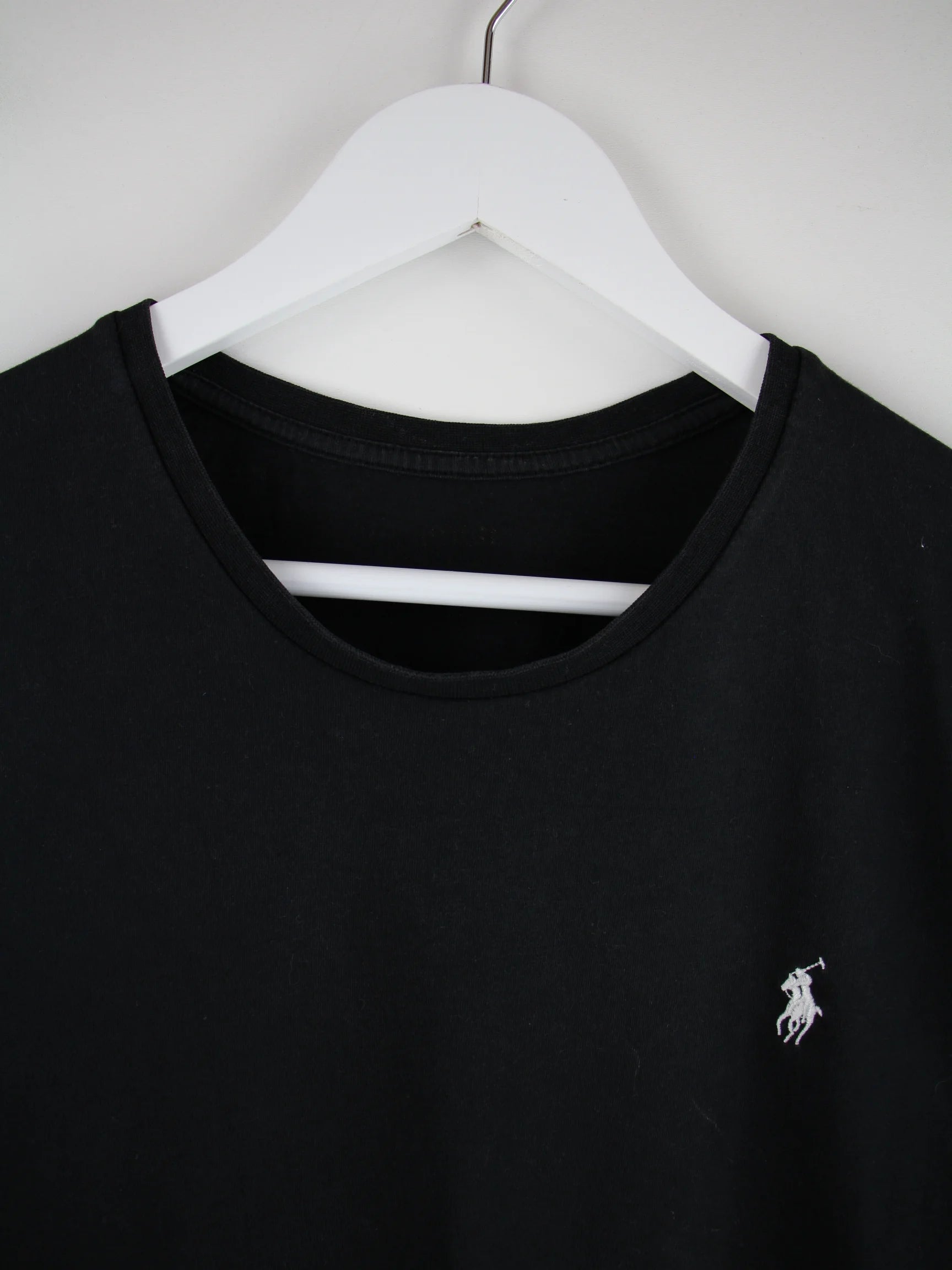 Schwarzes T-Shirt des Labels Ralph Lauren in Größe S. Es ist aus Baumwolle hergestellt und in gutem Zustand bei uns vorrätig.
