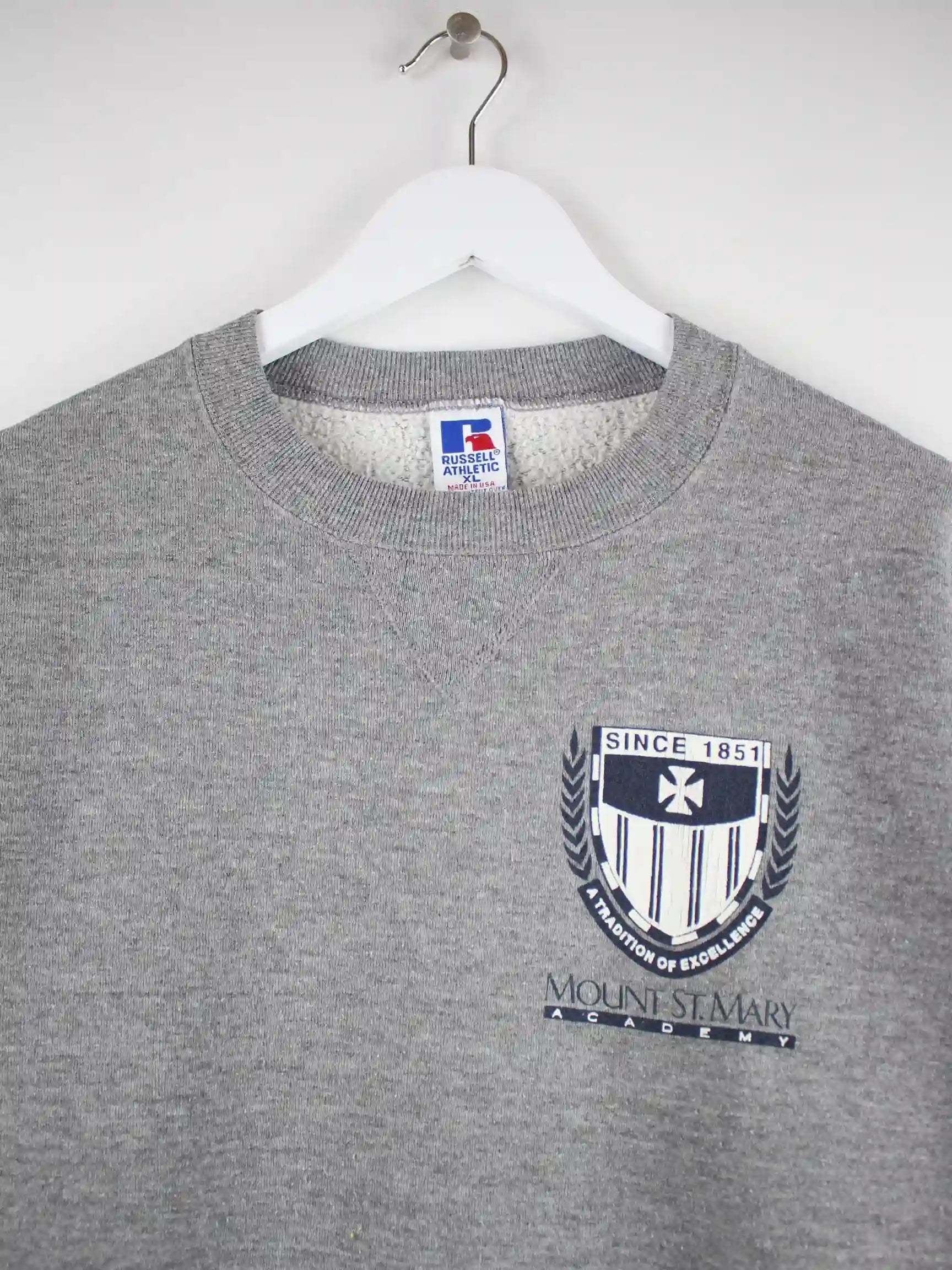 Russell Athletic 90s Vintage Mount St. Mary Print Sweater Grau XL