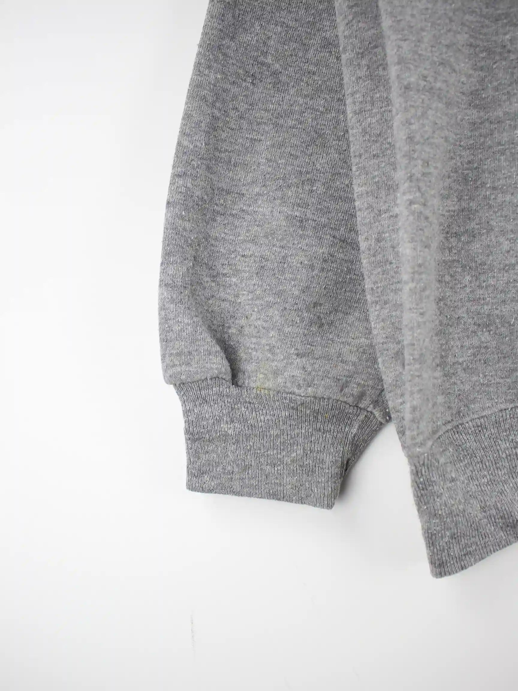 Grauer Sweater aus dem Hause Russell Athletic aus den 90'ern in Größe XL. Er ist aus einer Baumwollmischung und in gutem Zustand zu bekommen. Mit seltenem Mary Print.