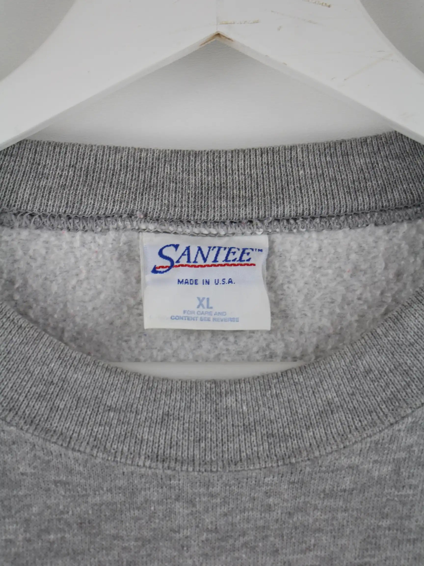 Sweater vom Brand Santee in Größe XL aus den 90'ern. Er ist aus einer Baumwollmischung hergestellt und in Grau zu bekommen.
