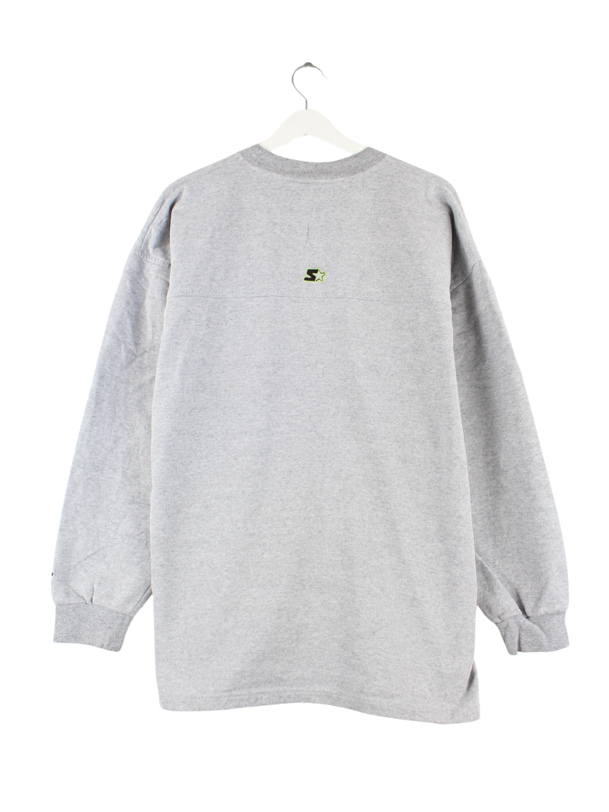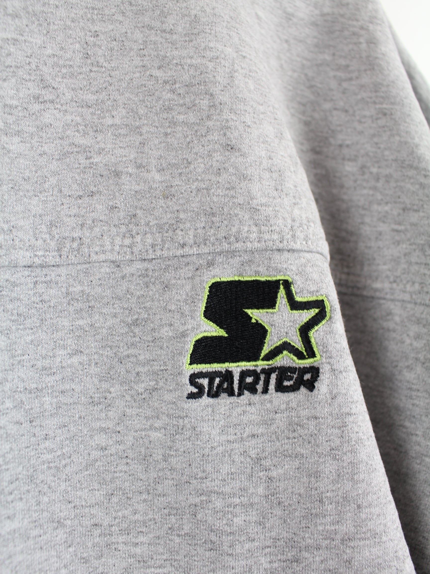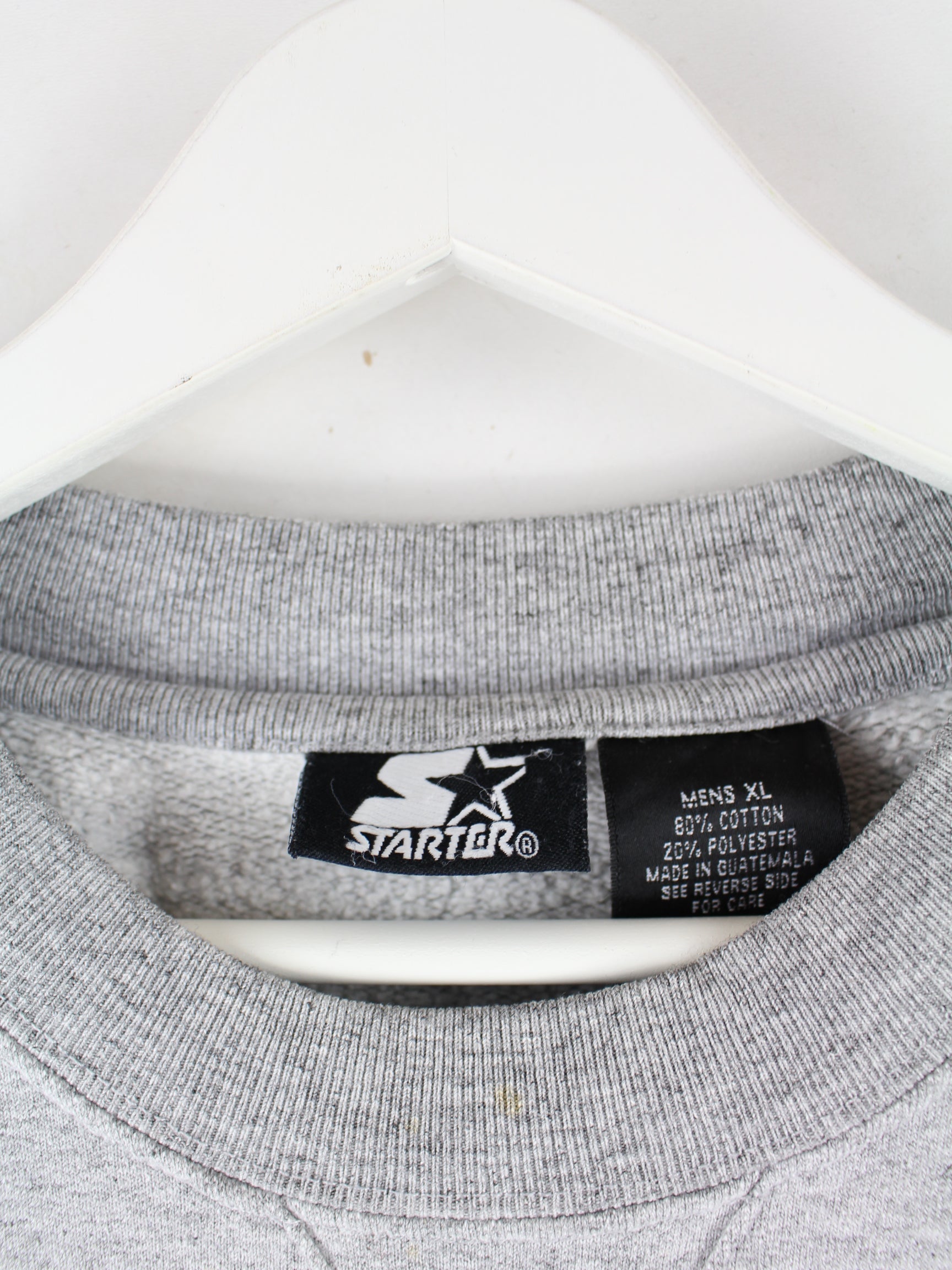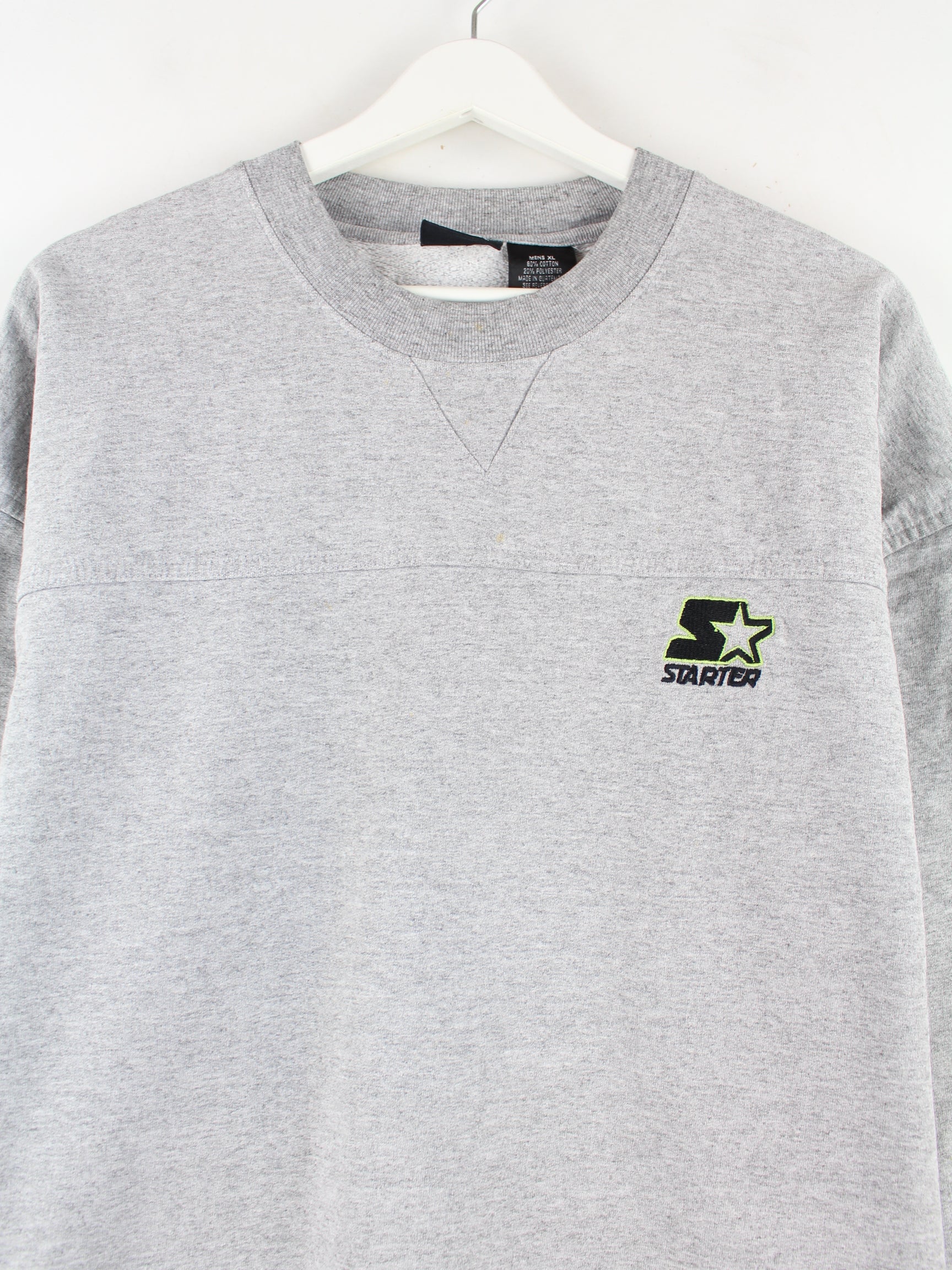 Sweater from the Starter brand with embroidery in size XL. It is made from a cotton blend and is in stock in grey.