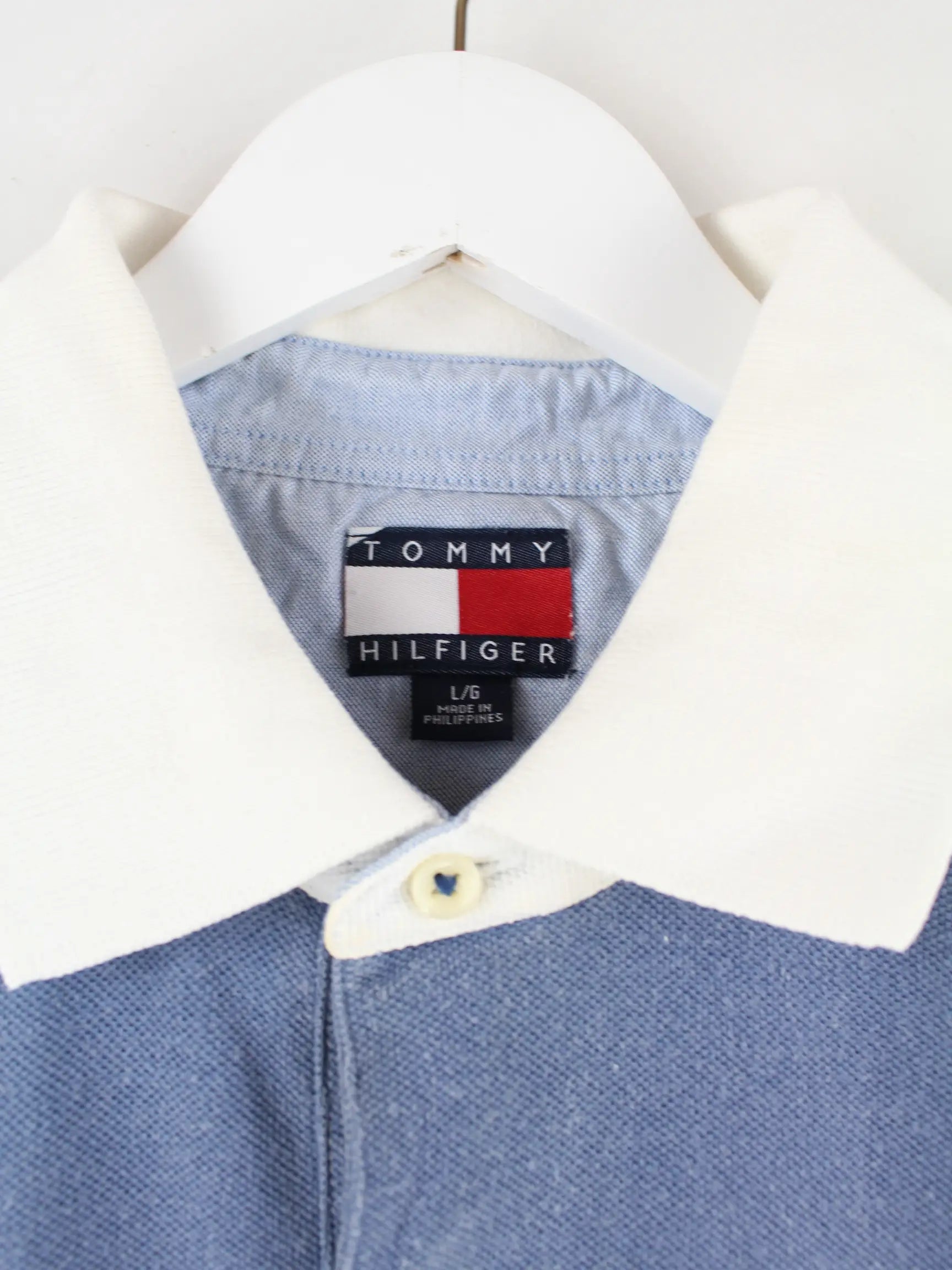 Poloshirt des Labels Tommy Hilfiger in Größe L aus den 90'ern. Es ist aus Baumwolle gefertigt und in Weiß vorrätig.
