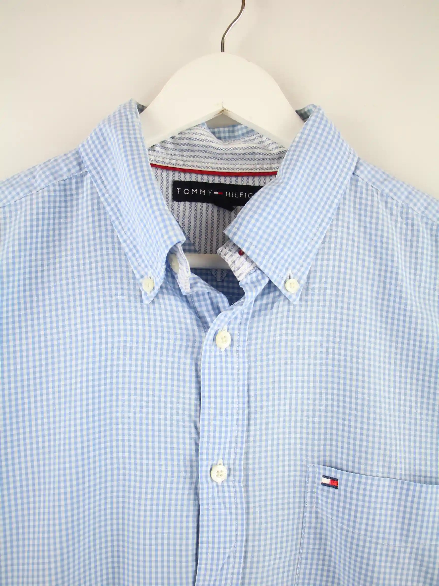 Hemd der Brand Tommy Hilfiger in Größe L. Es ist aus Baumwolle angefertigt und in Blau bei uns zu bekommen.