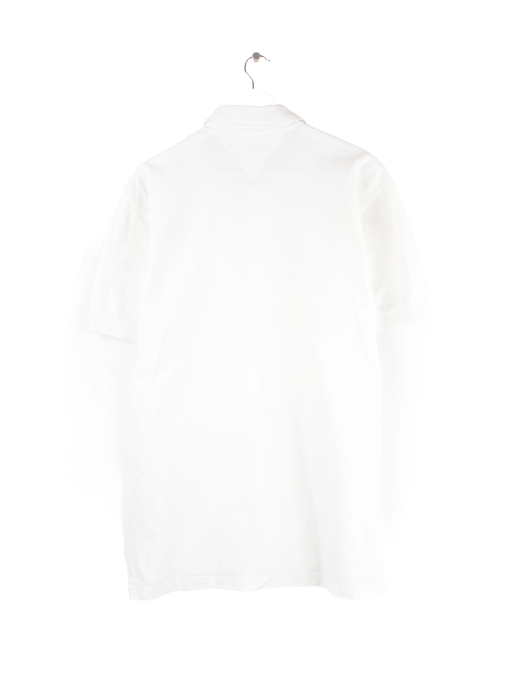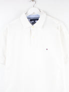 Weißes Poloshirt vom Label Tommy Hilfiger in Größe XL. Es ist aus Baumwolle produziert. Den Zustand würden wir als 'In Ordnung' bezeichnen (vergl. Bilder).
