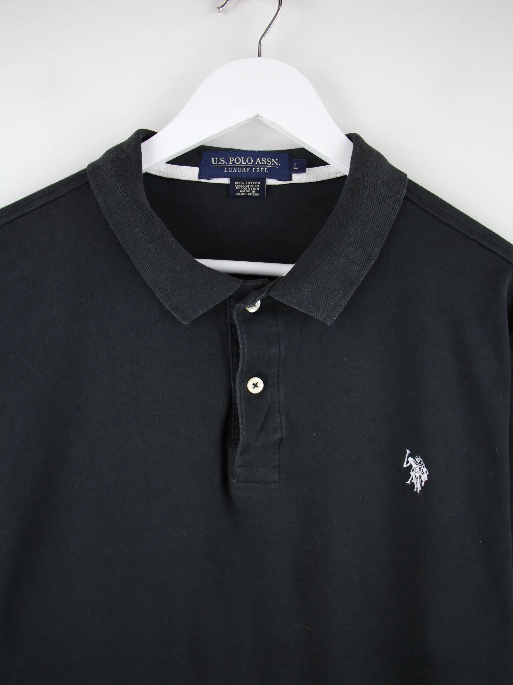Poloshirt der Marke U.S. Polo ASSN. in Größe L. Es ist aus Baumwolle angefertigt und in Schwarz zu bekommen.