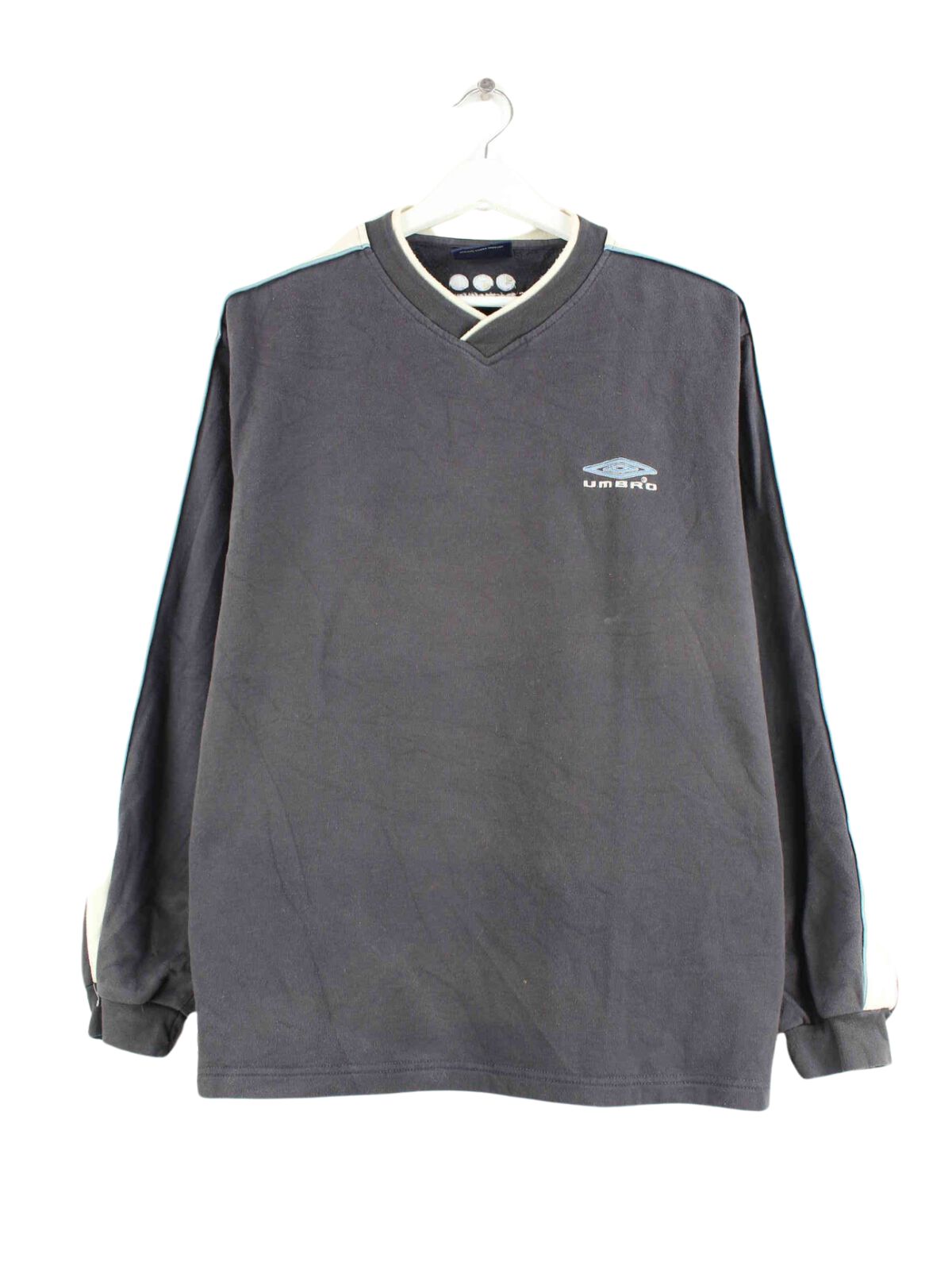 Gray sweater with embroidery from the brand Umbro from the 90's in size M. It is made from a cotton blend and is in good condition in stock.