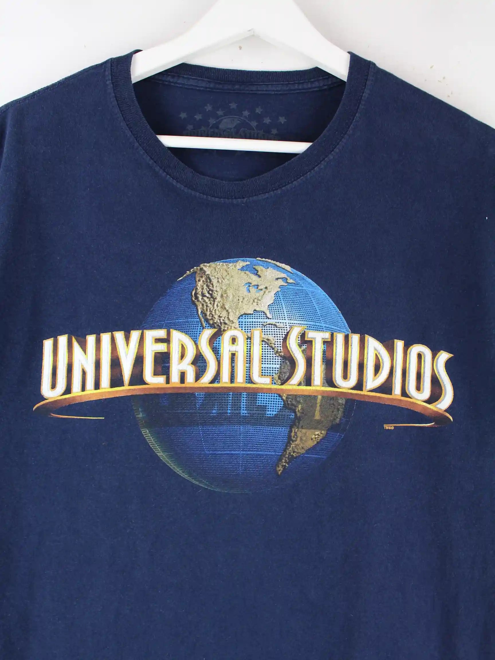 T-Shirt vom Label Universal Studios in Größe M. Es ist aus Baumwolle gefertigt und in Blau auf Lager. Mit schickem Print.