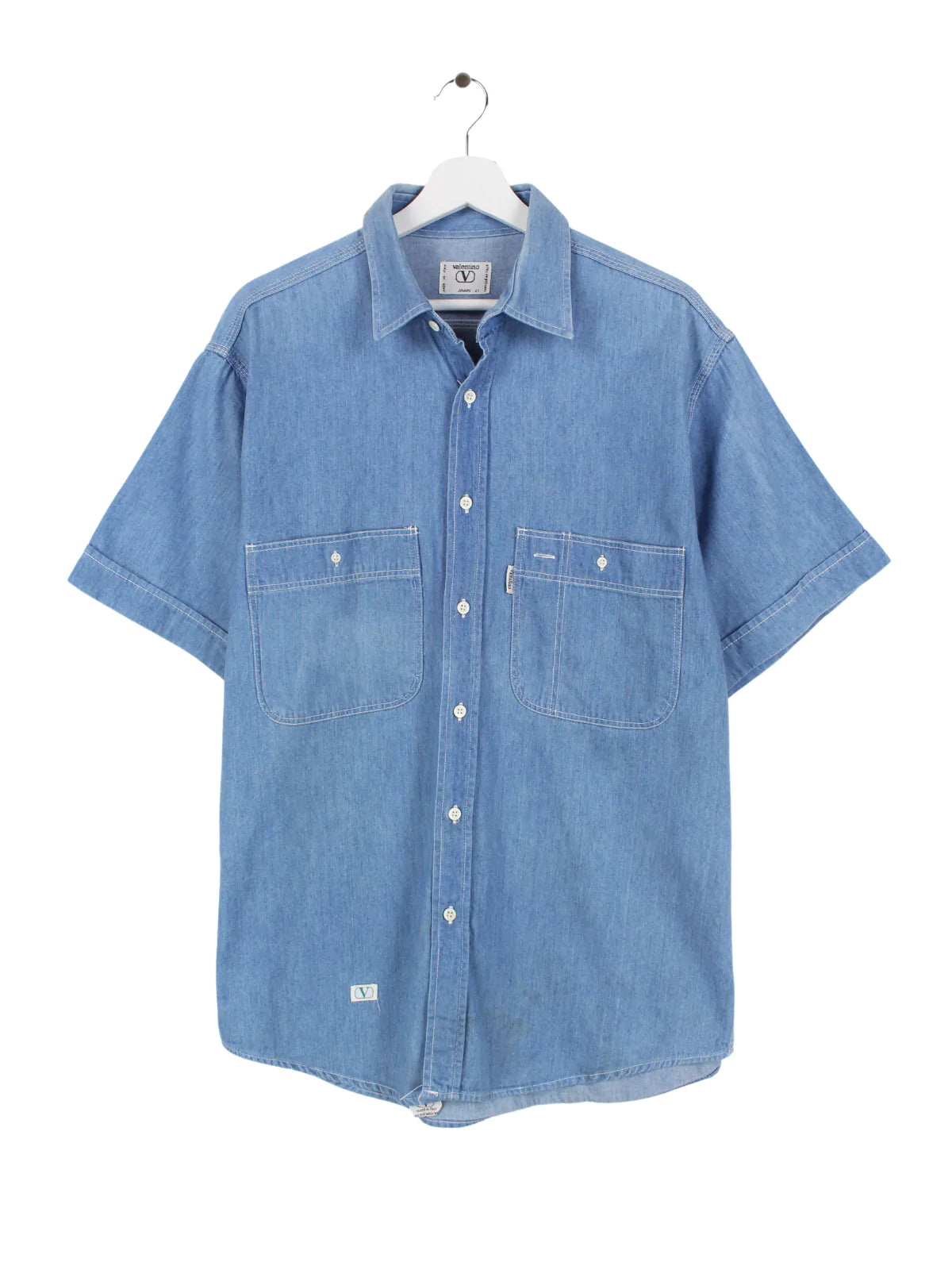 Valentino Short Sleeve Denim Shirt Blue XL