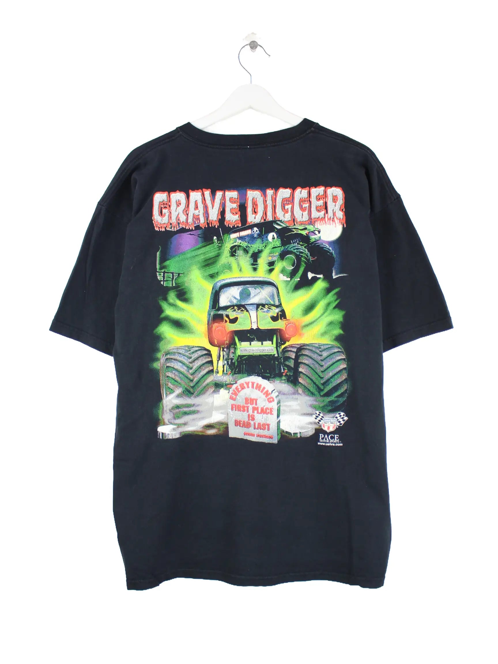 Vintage 00s Monster Truck Racing Print T-Shirt Schwarz XL