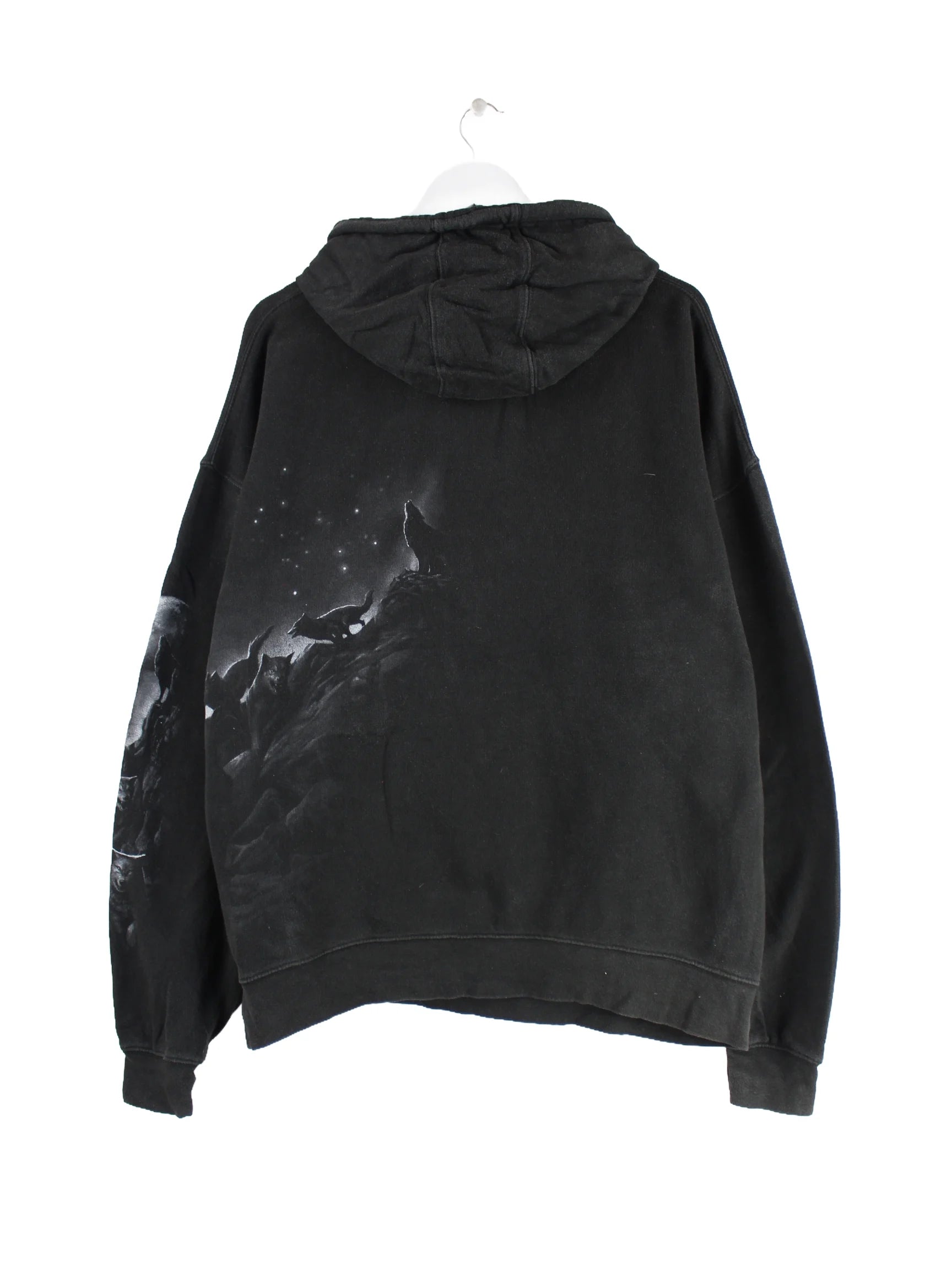 Vintage 00s Wolves Print Hoodie Schwarz XXL