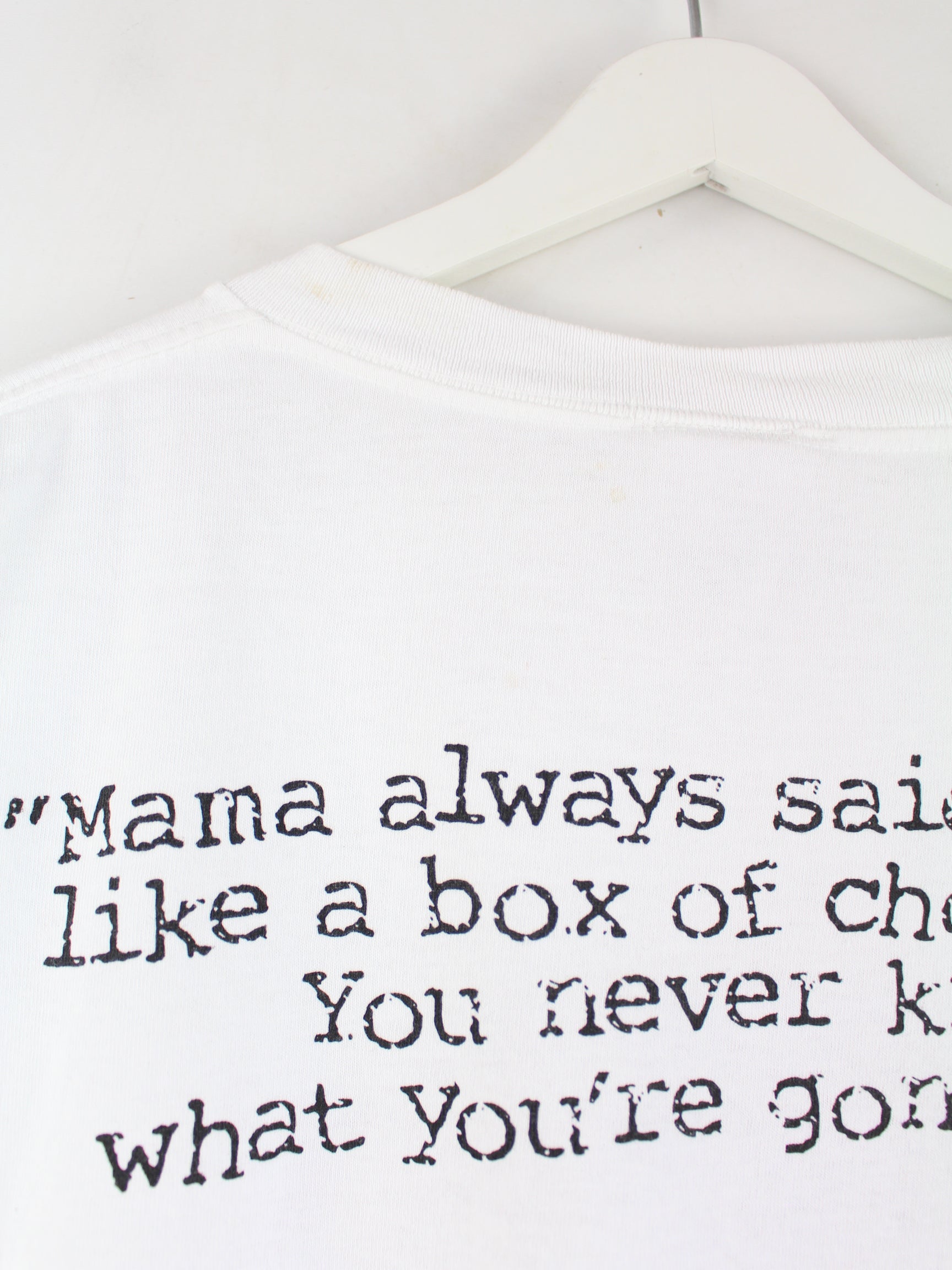 White vintage T-shirt in size XL. It is made of cotton and in good condition. With rare Gump print.