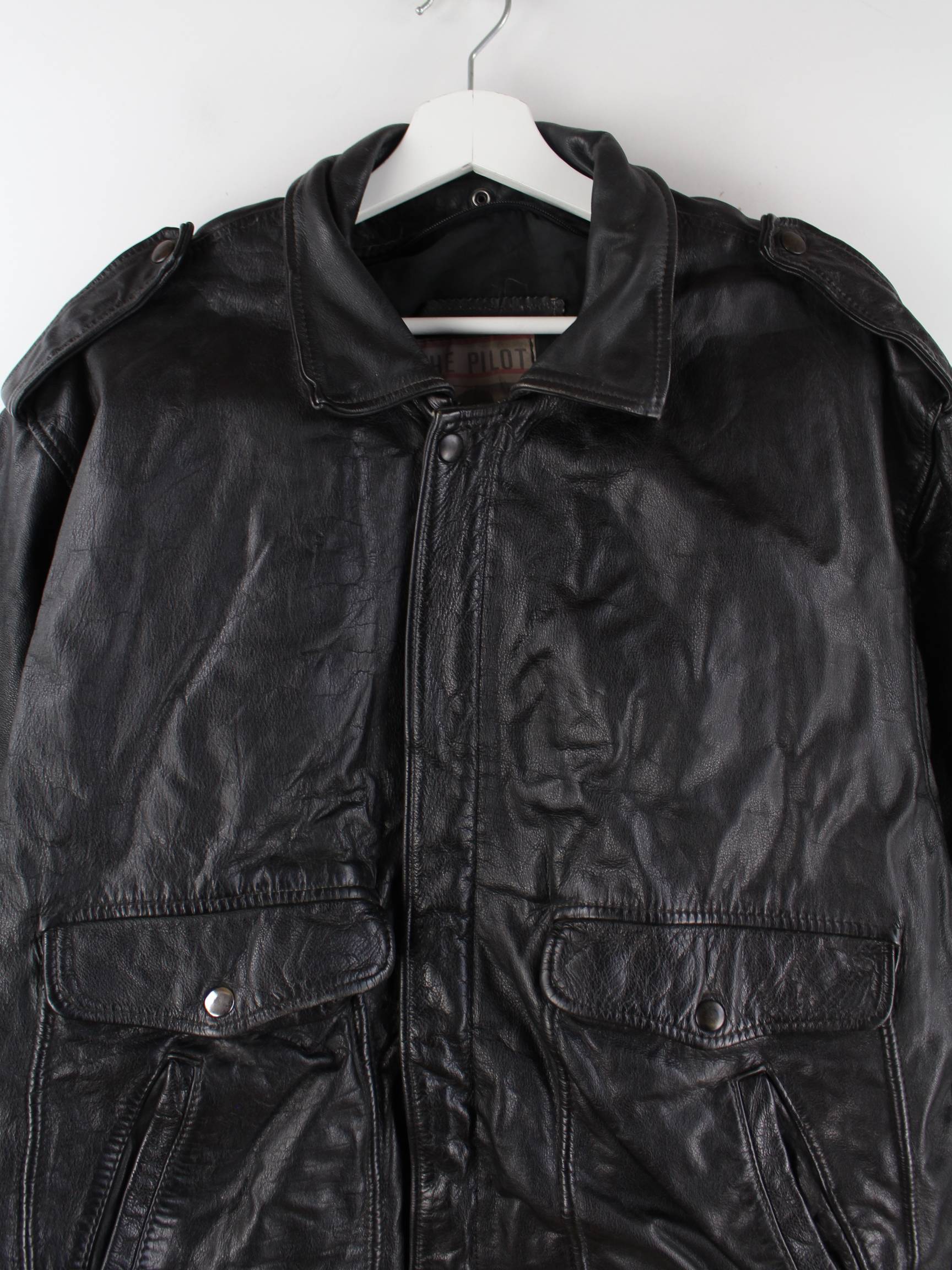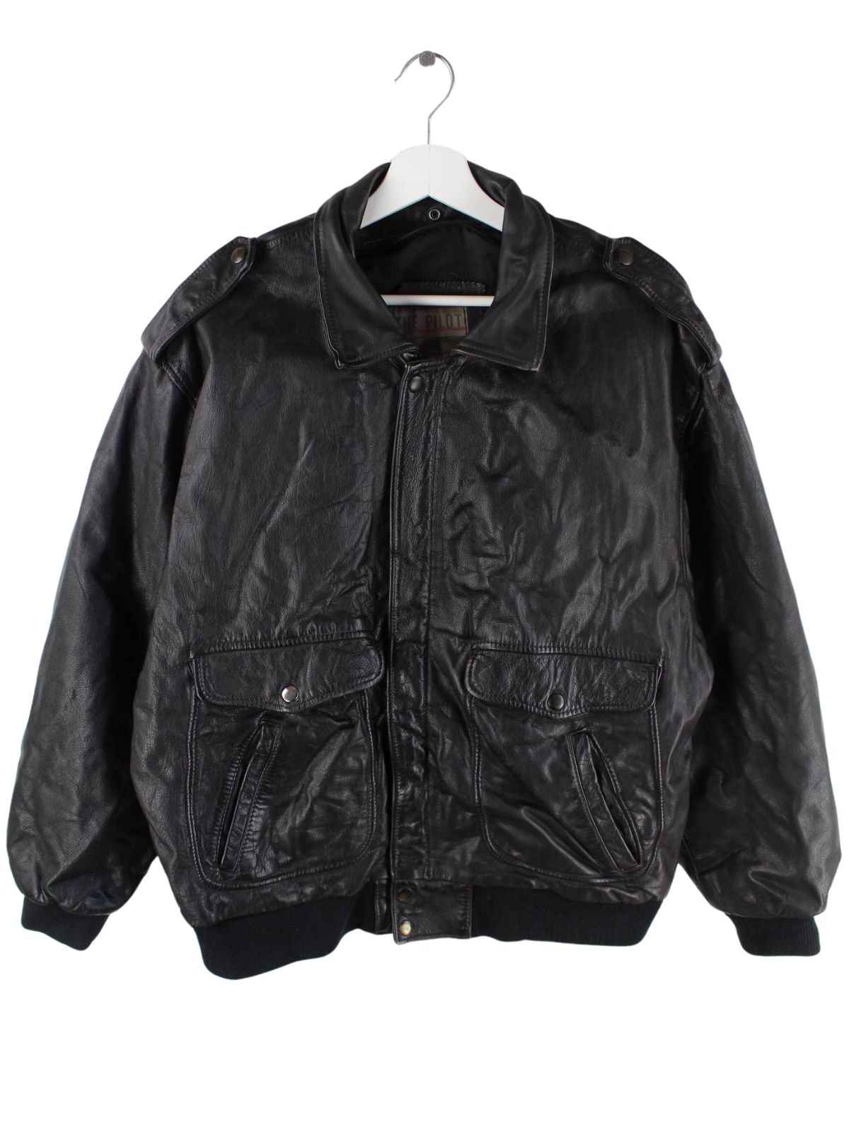 Schwarze Vintage Jacke aus den 80'ern in Größe L. Sie ist aus Leder produziert und in sehr gutem Zustand in Stock.