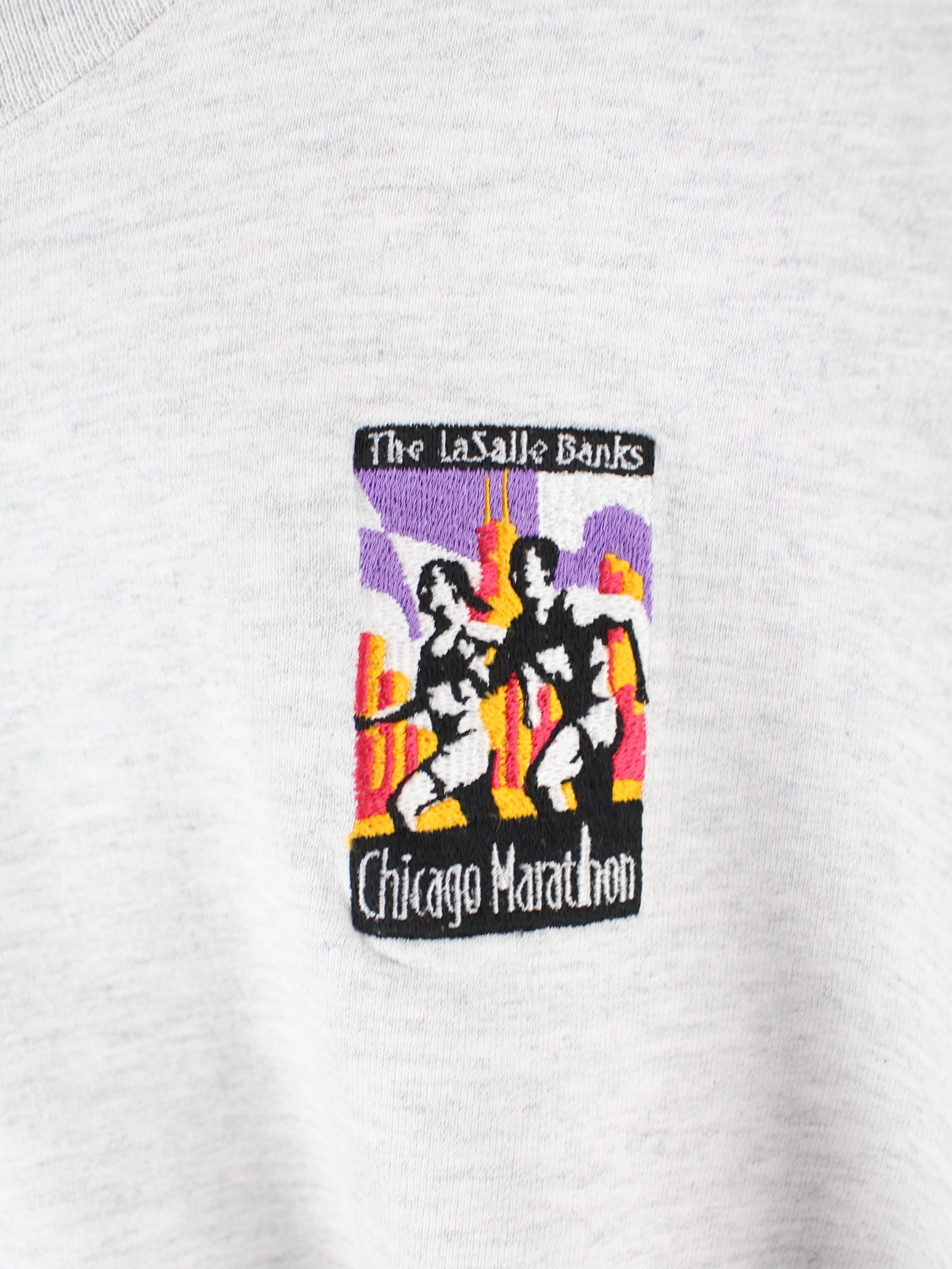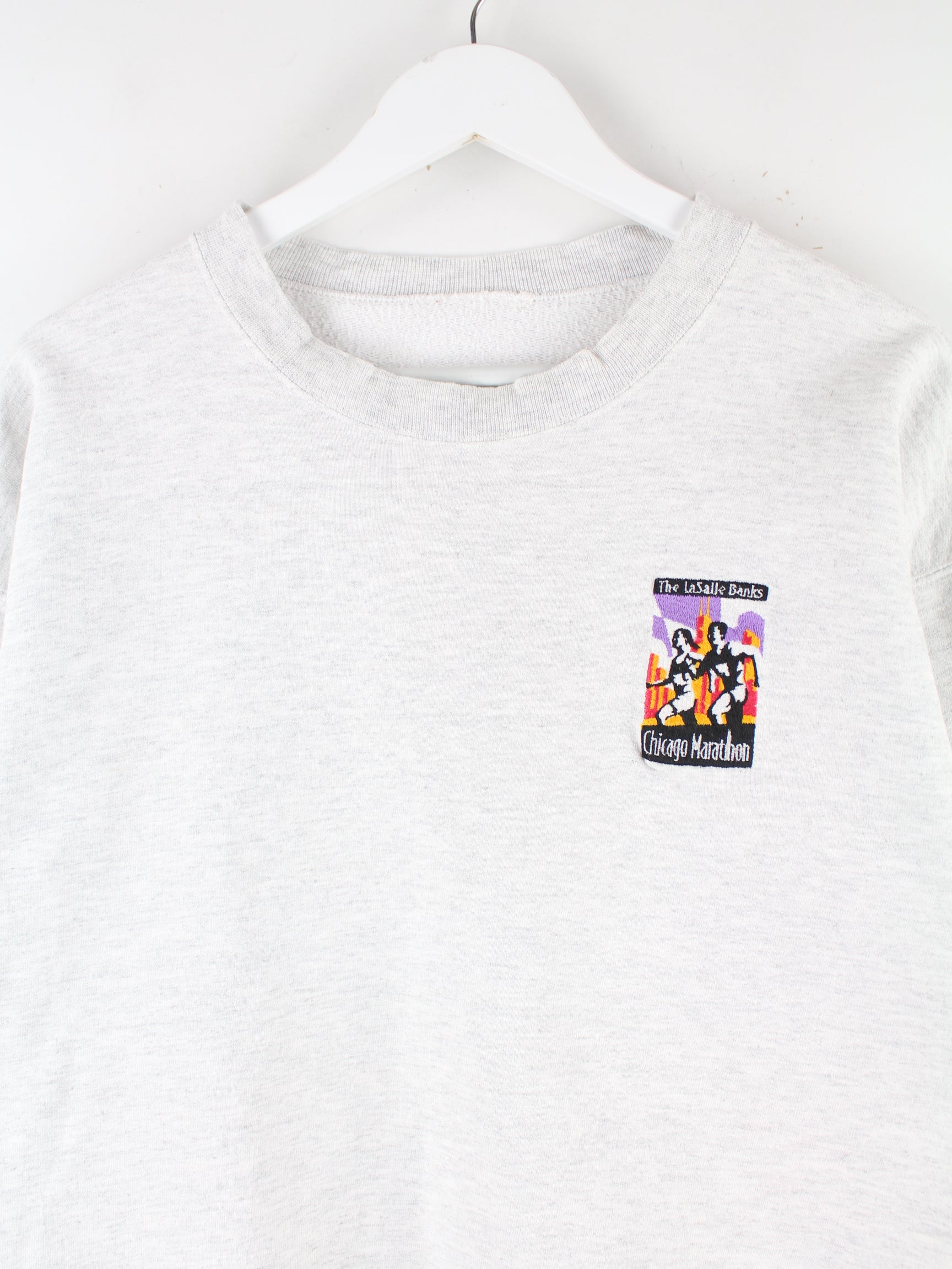 Vintage 90s Chicago Marathon Embroidered Sweater Grau M