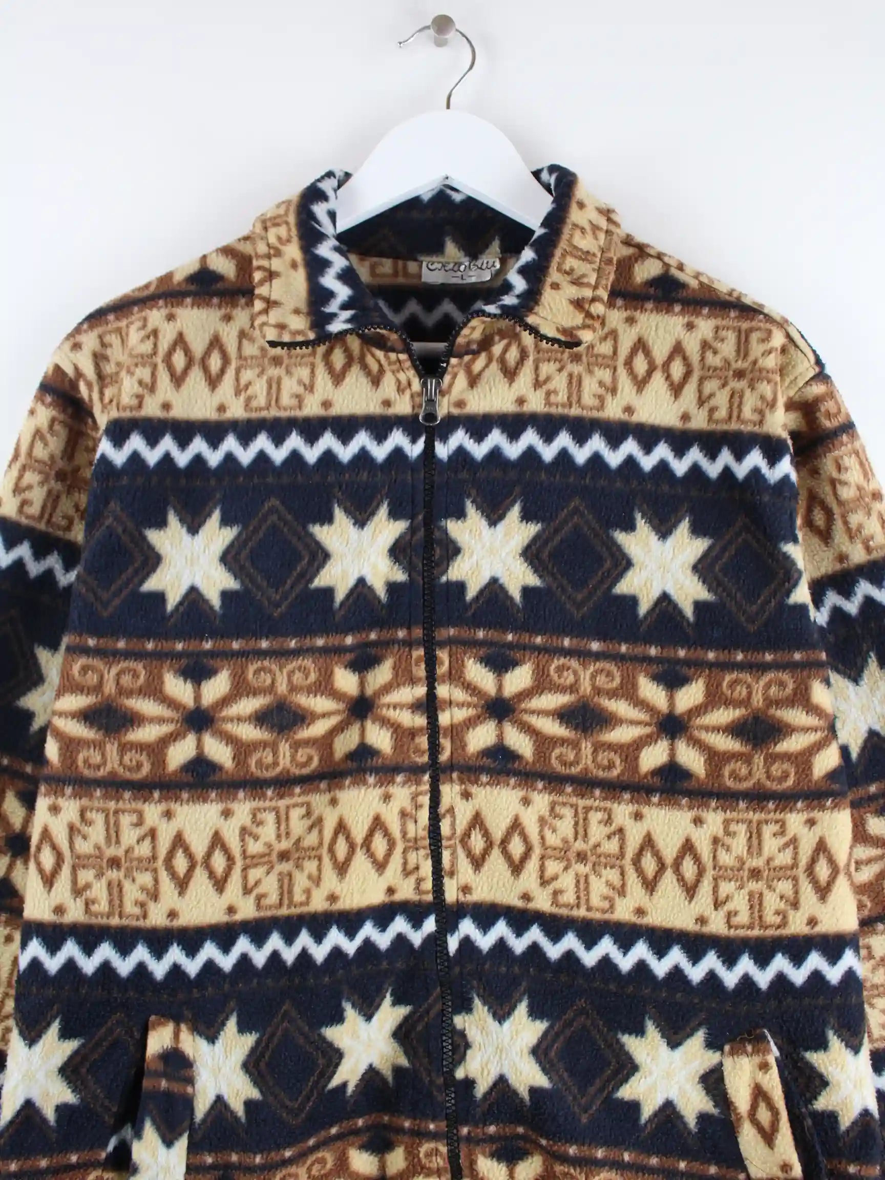 Vintage 90s Crazy Pattern Fleece Jacke Braun L