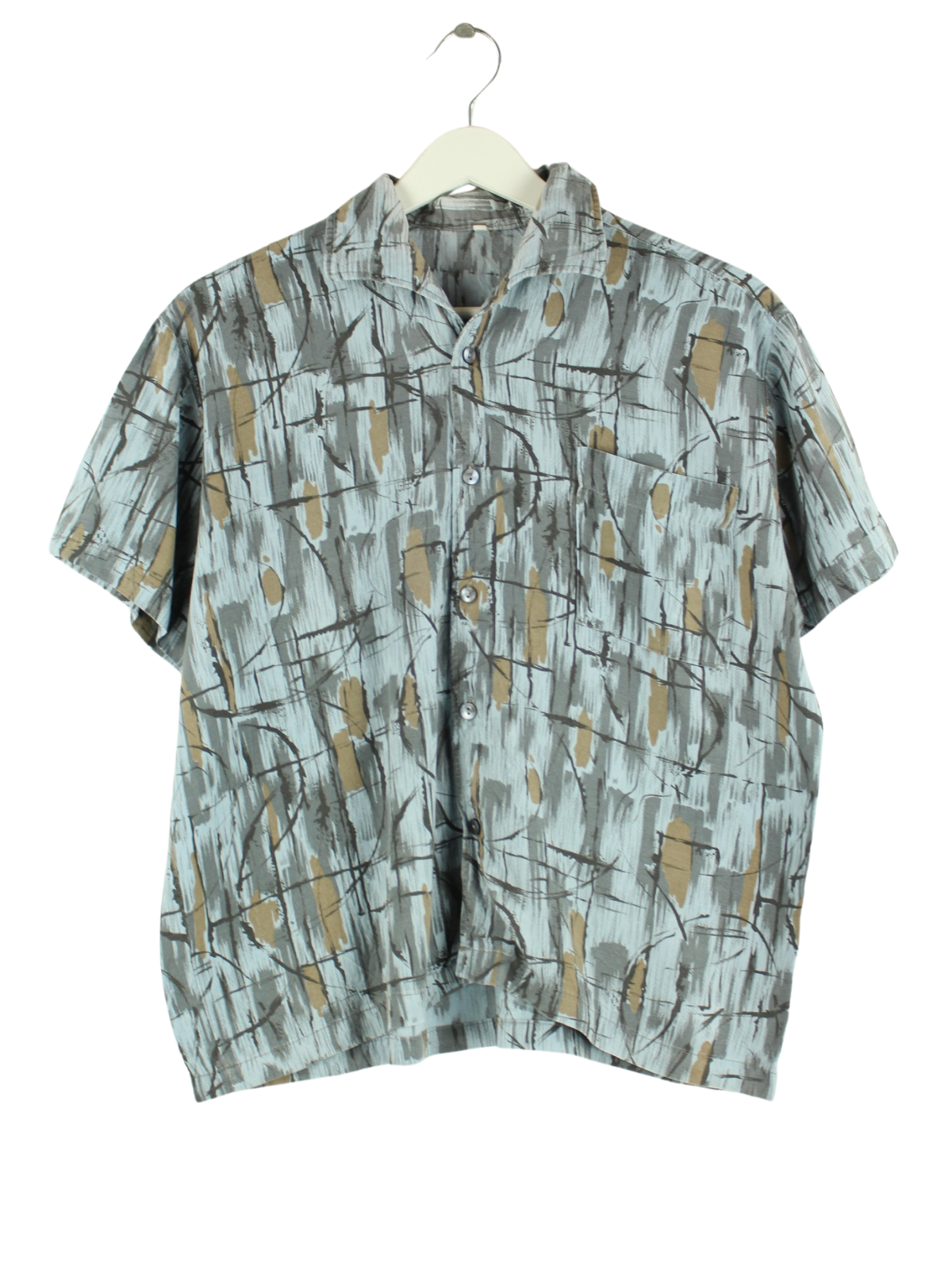 Vintage 90s Ladies Crazy Pattern Short Sleeve Shirt Blue S