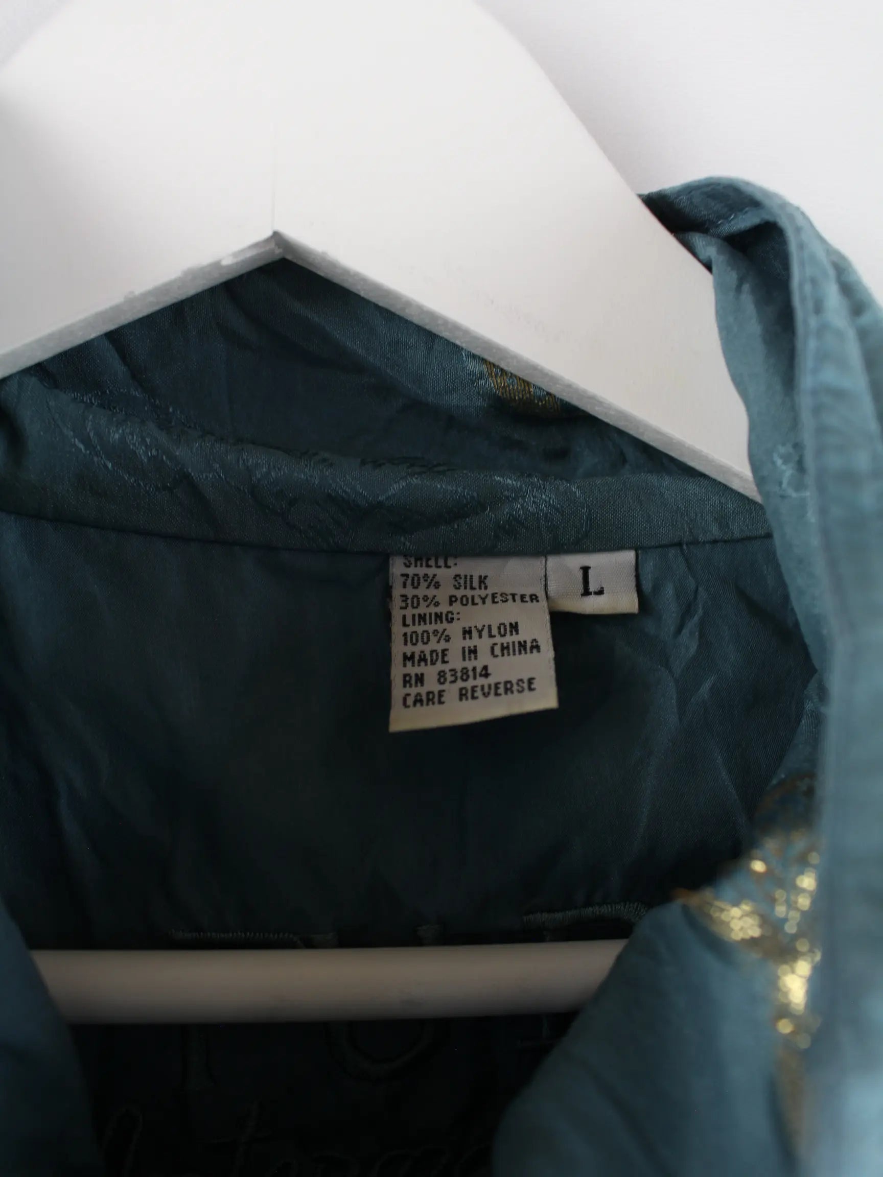 Vintage Trainingsjacke in Größe L aus den 90'ern. Sie ist aus Seide produziert und in Grün zu bekommen.